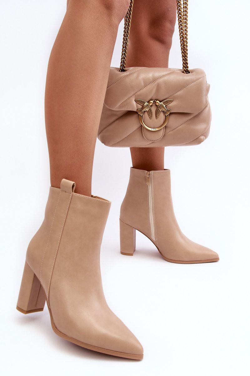 Boty ženy jsou vyrobeny z eko kůže. Zateplený obuvníkem. Podpatky ve formě stabilního sloupku. Špičky opticky zúží nohy. Horní lem je uzavřený zipem po straně. Ideální pro mnoho stylů, například sukně, sukně nebo kalhoty. Tyto boty by měly být jistě ve vašem šatníku! Při výběru velikosti se řiďte tabulkou velikostí.