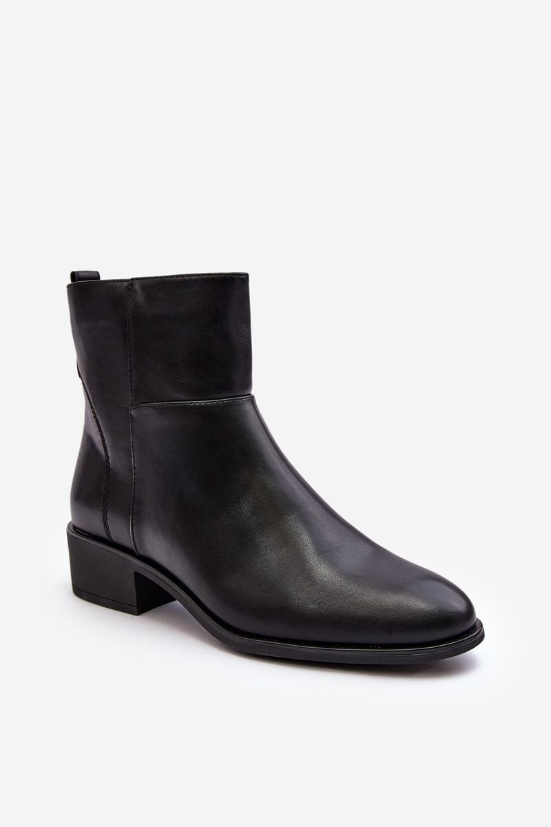 Klasické dámské boty na ploché podpatku. Vyrobené z eko kůže. Svršek ozdobený stehy. Tento model je uzavřen zipem po straně. Špička zaoblená. Vnitřek zateplený kožešinou. Zpevněný patník. Ideální pro mnoho stylů! Určitě se podívejte i na ostatní modely botek, které jsou k dispozici v naší nabídce. Při výběru velikosti se řiďte tabulkou velikostí.