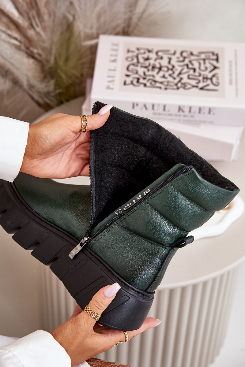 Dámské Kožené Boty Na Zip Zateplené Filcem Tmavozelené Zazoo 60512