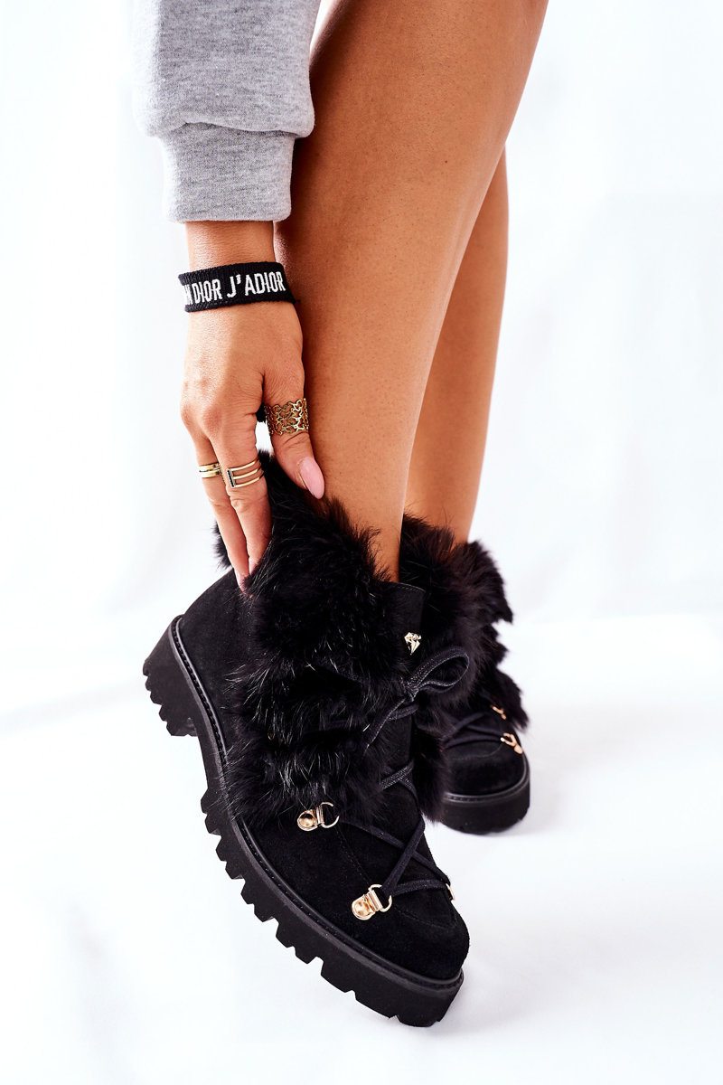 Krásné a módní boty od Nicole. Boty jsou vyrobeny z přírodní velurové kůže. Vnitřek bot je zateplen přikrývkou na boty, která zaručuje teplo i v těch nejchladnějších dnech. Svršky zdobí krásná umělá kožešina. Klasický šněrovací styl s krásnými zlatými očky.