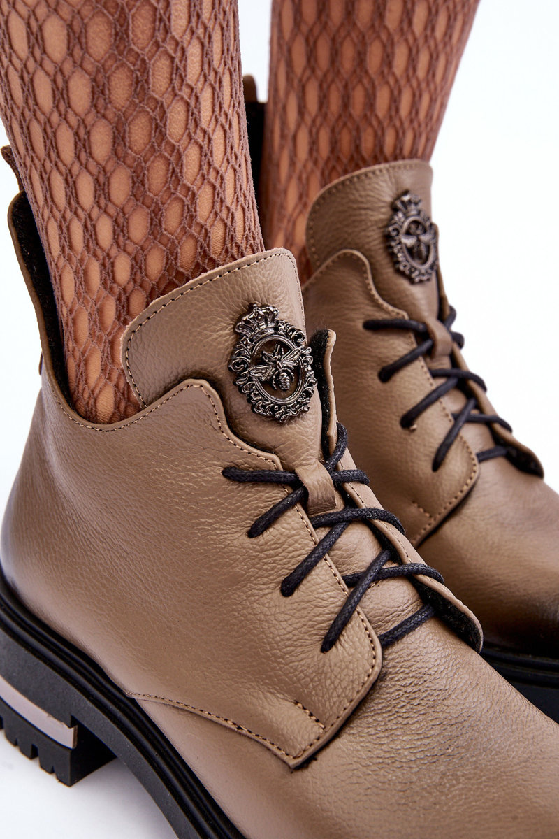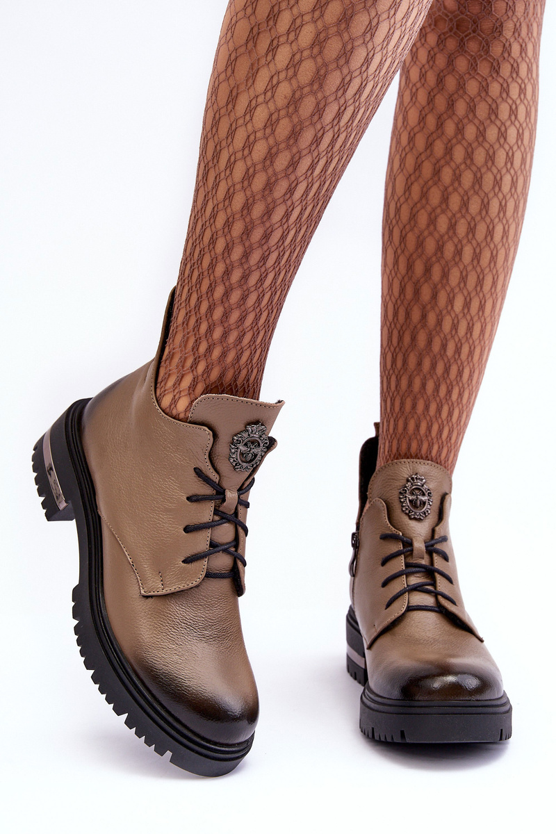 Módní kozačky s ozdobou na jazyku. Byly vyrobeny z vysoce kvalitní přírodní kůže. Kozačky zapínané na zip a šněrování. Nepravidelný svršek zvýrazní mnoho stylů! Boty jsou nasazeny na plochém podpatku a platformě. Zateplené dekou na boty. Měkká stélka zajistí pohodlí při používání. Při výběru velikosti použijte tabulku velikostí.