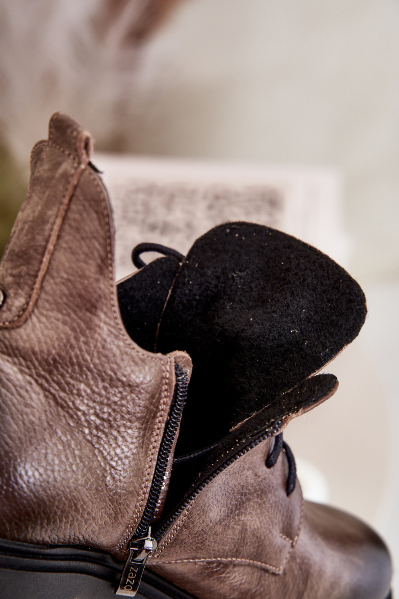 Módní boty s ozdobou na jazyku. Jsou vyrobeny z vysoce kvalitní přírodní kůže. Boty se zapínají na zip a šněrování. Nerovný svršek skvěle podtrhne mnoho stylizací! Boty jsou umístěny na plochém podpatku a platformě. Zateplené obuvnickou vlnou. Měkká stélka zajistí pohodlí při nošení. Při výběru velikosti se řiďte tabulkou velikostí.
