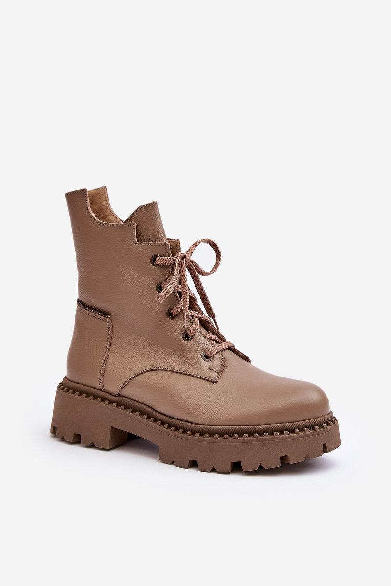 Dámské kožené boty trapery na zip Zazoo 949P tmavě béžové
