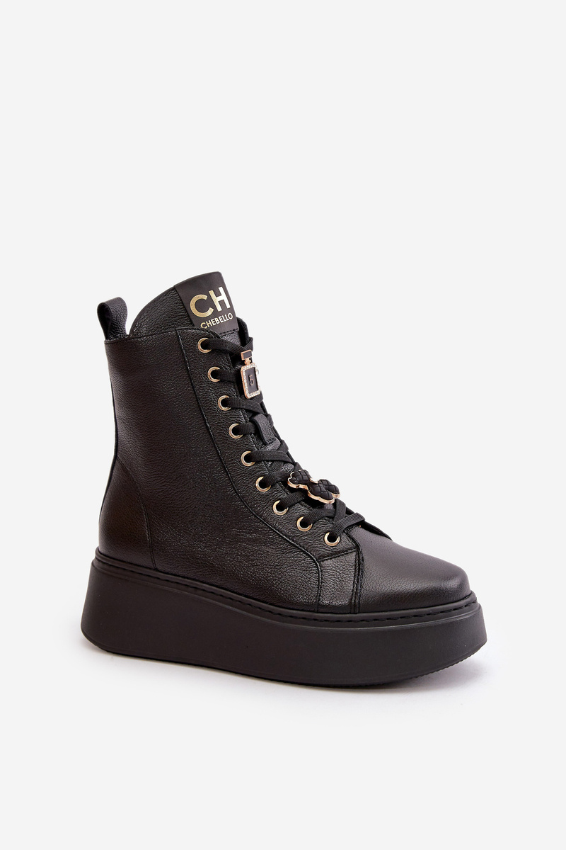Dámské Kožené Boty Workery S Připínáky Černé CheBello 4294