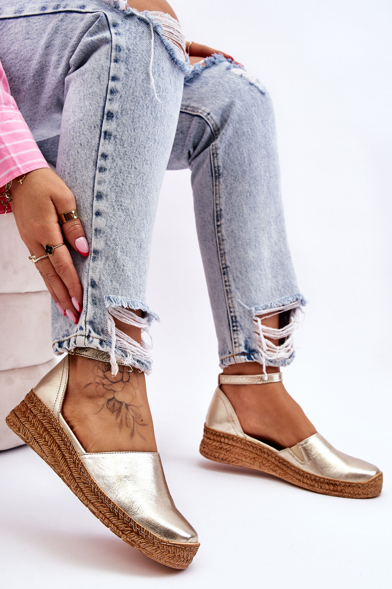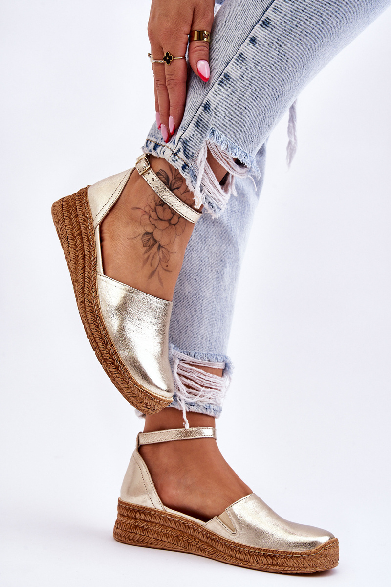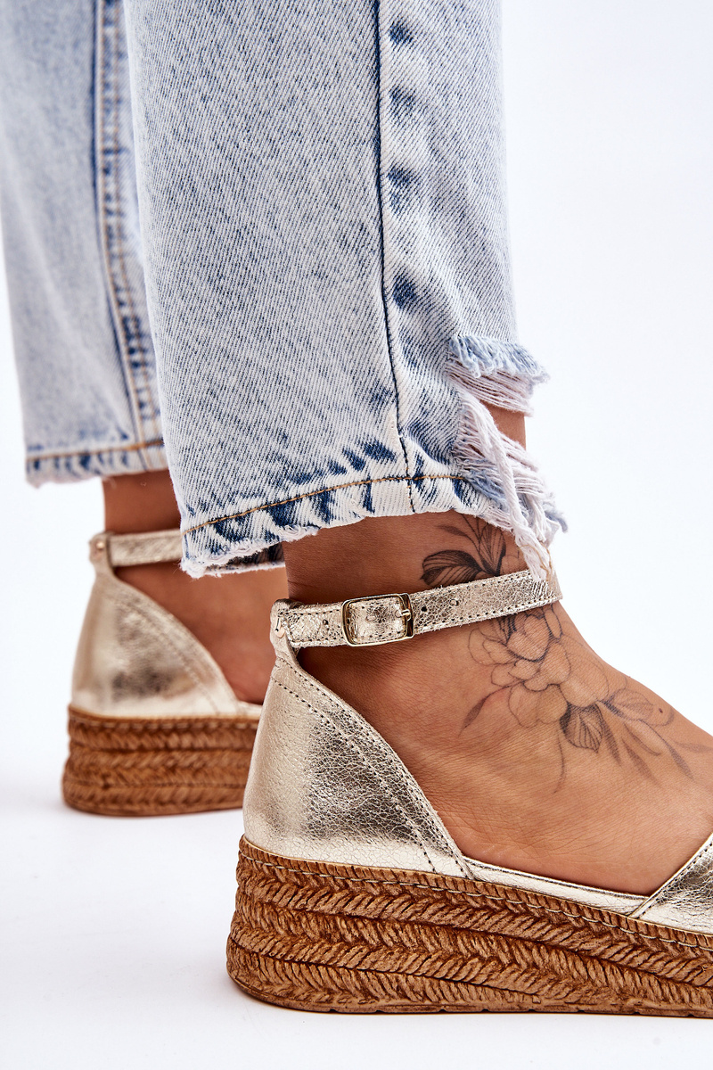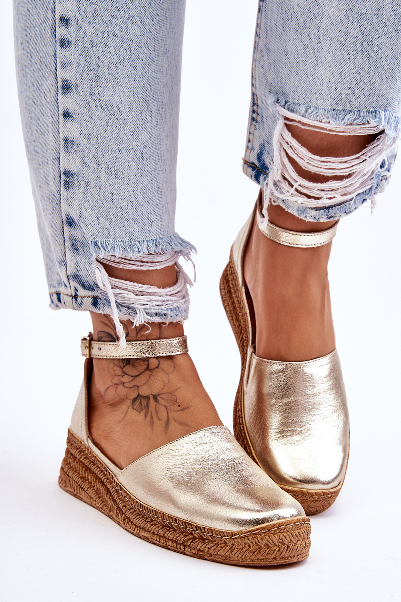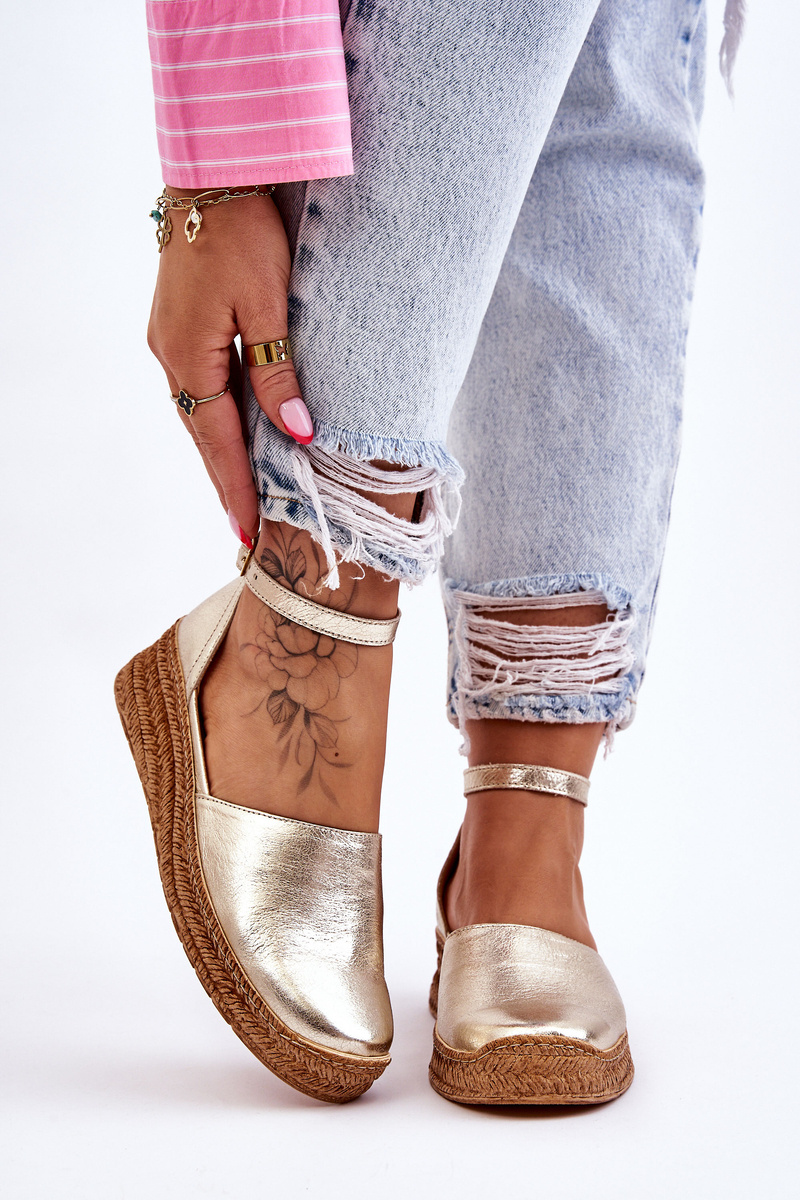Espadrilky na platformě a klínové podpatky jsou vyrobeny z přírodní kůže. Zapínání kolem kotníku na přezku s nastavitelným páskem. Platforma je vyrobena z plastu s imitací copu. Měkká stélka z přírodní kůže umožní pohodlné používání. Podívejte se také na další modely espadrilek dostupné v naší nabídce!Při výběru velikosti se prosím řiďte velikostní tabulkou.
