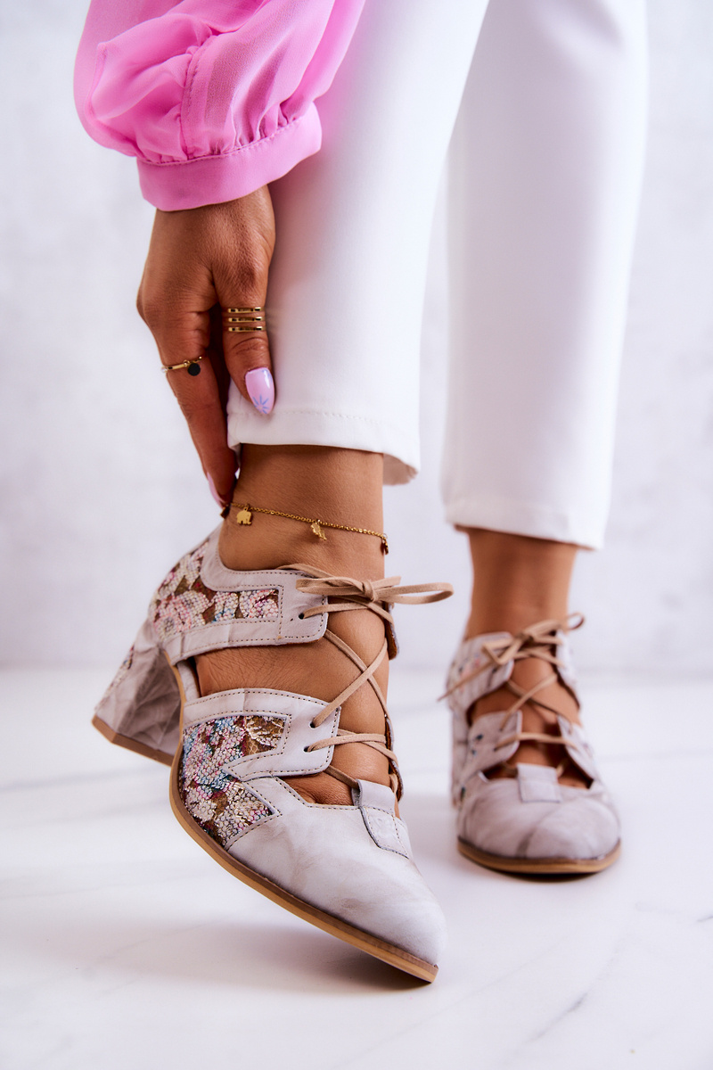 Mimořádně stylové boty od Maciejky jsou nyní k dispozici! Přitahují pozornost svým neobvyklým designem. Vyrobeno z přírodní kůže a tkaniny. Horní kotník. Nádherný model, ideální pro jarní a letní stylizace! Kozačky se zavazují plochými tenkými tkaničkami. Nos mandlového tvaru. Stabilní podpatek v podobě sloupku zajistí pohodlí na každém kroku. Měkká, kožená stélka je zárukou pohodlí. V těchto botách rozhodně vyniknete z davu! Při výběru velikosti použijte tabulku velikostí.