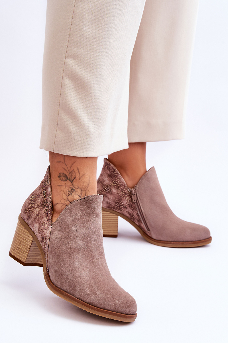Dámské kožené kozačky na vysokém podpatku Maciejka 04492-14 Tmavě béžová