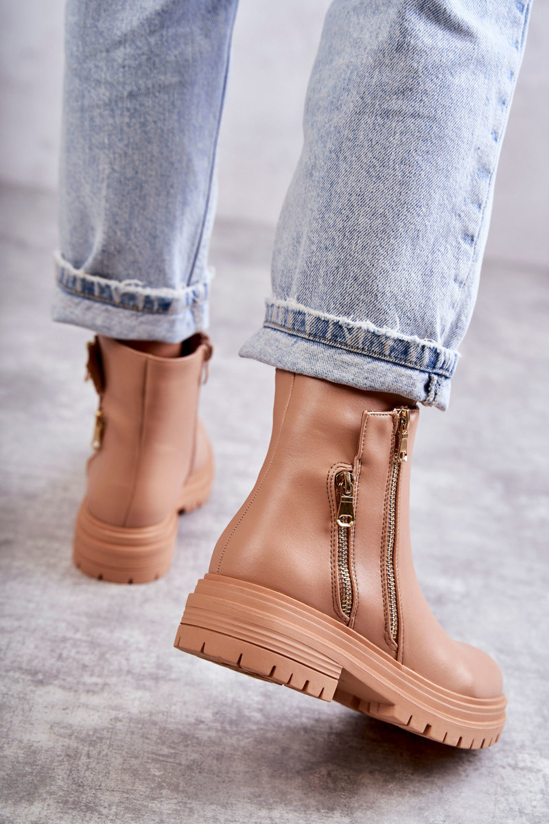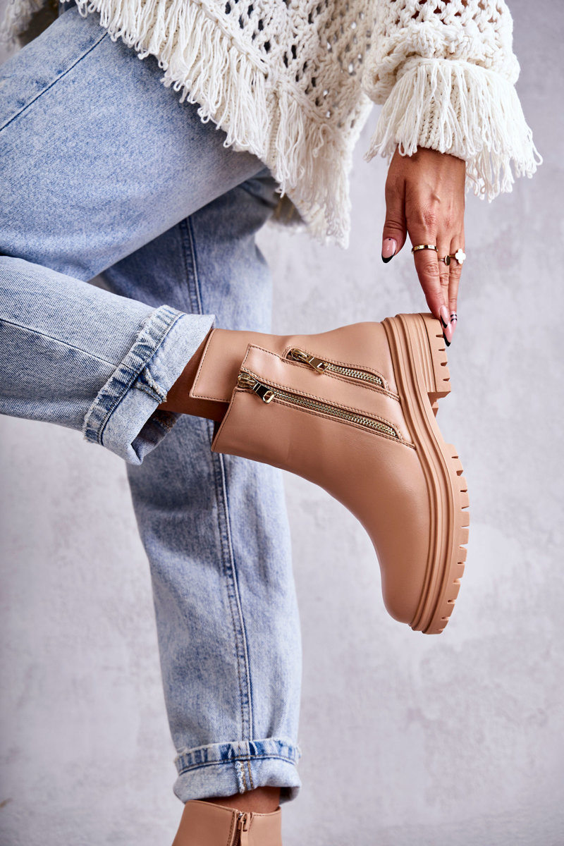 Dámské kozačky mají zipy na obou stranách svršku. Nepravidelný střih těchto kozaček vás odliší od davu. Nasazené na plochém podpatku a platformě. Zipy na vnější straně mají dekorativní funkci. Vnitřek bot je zateplen dekou, která je příjemná na dotek. Podrážka s nášlapem skvěle izoluje od studené země. Při výběru velikosti použijte tabulku velikostí.
