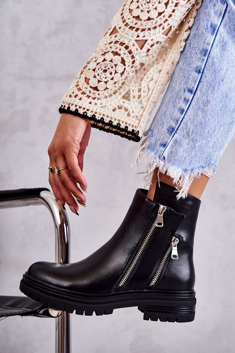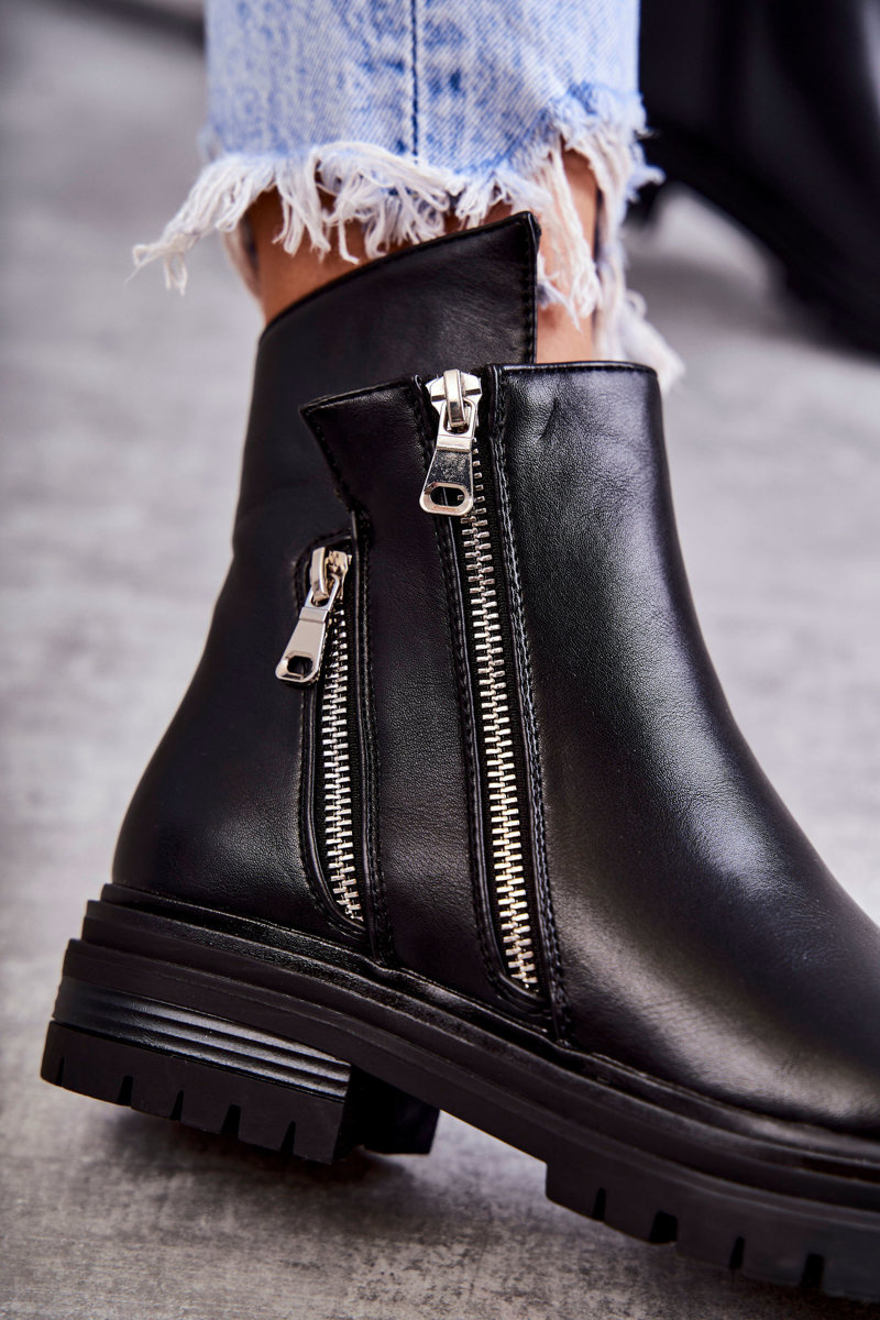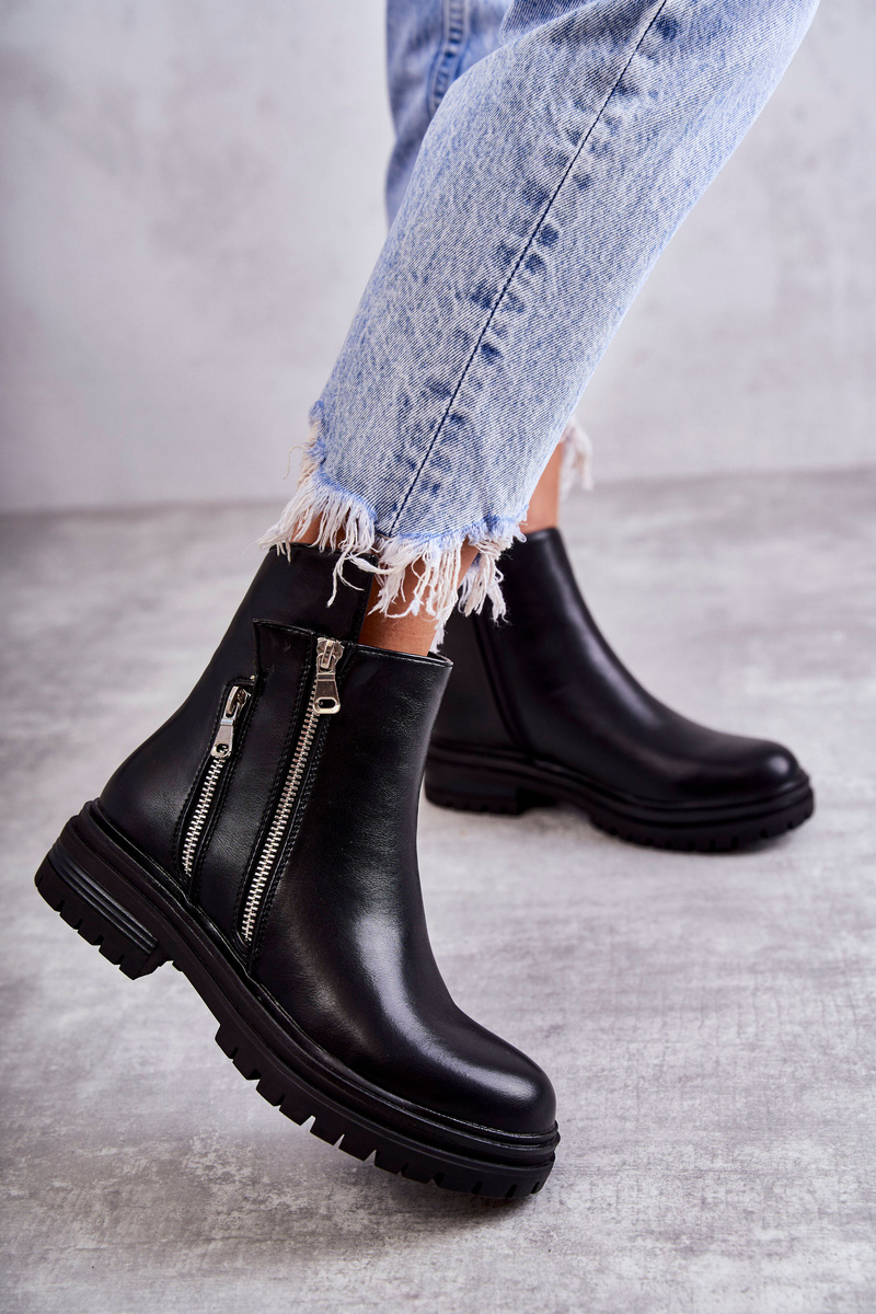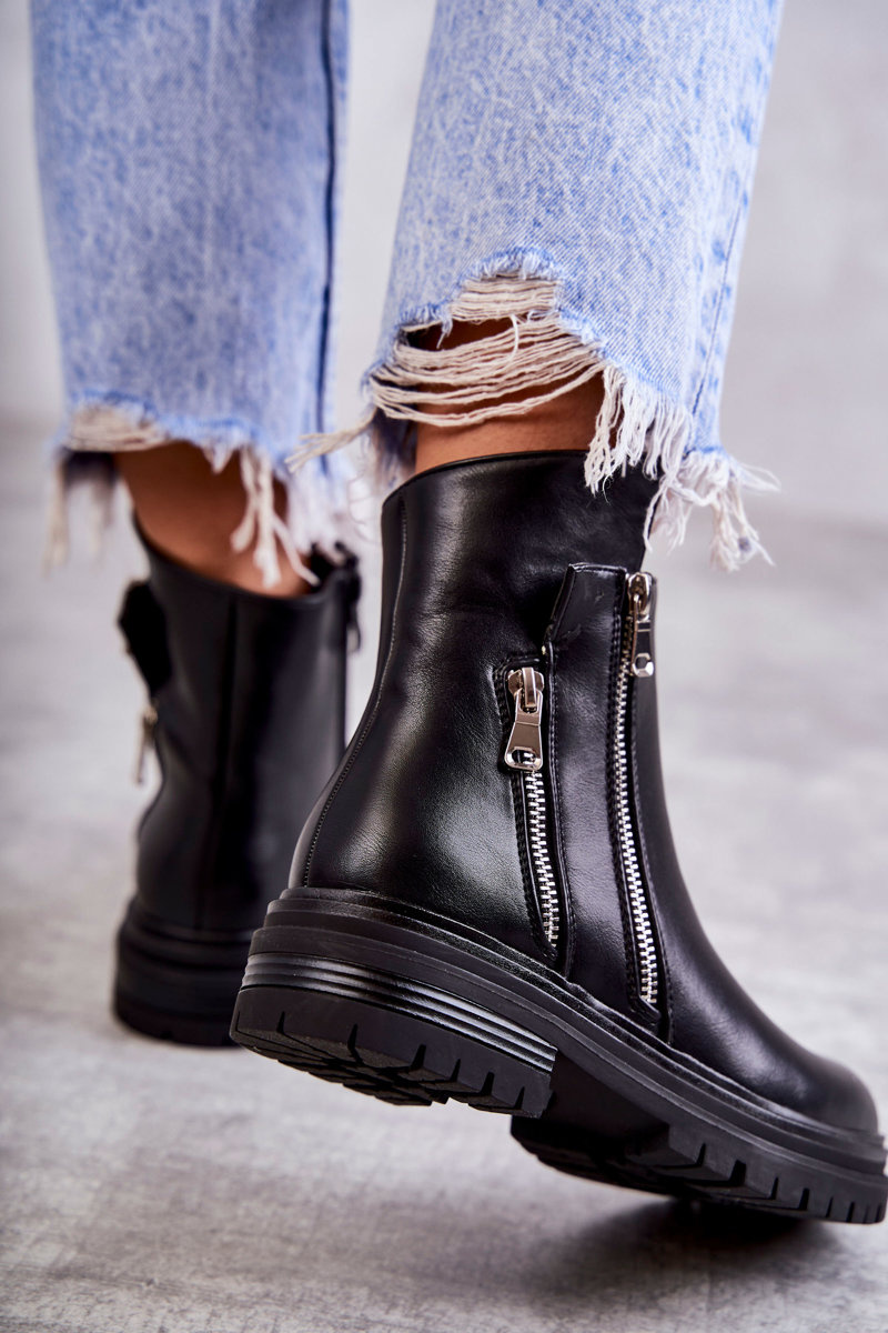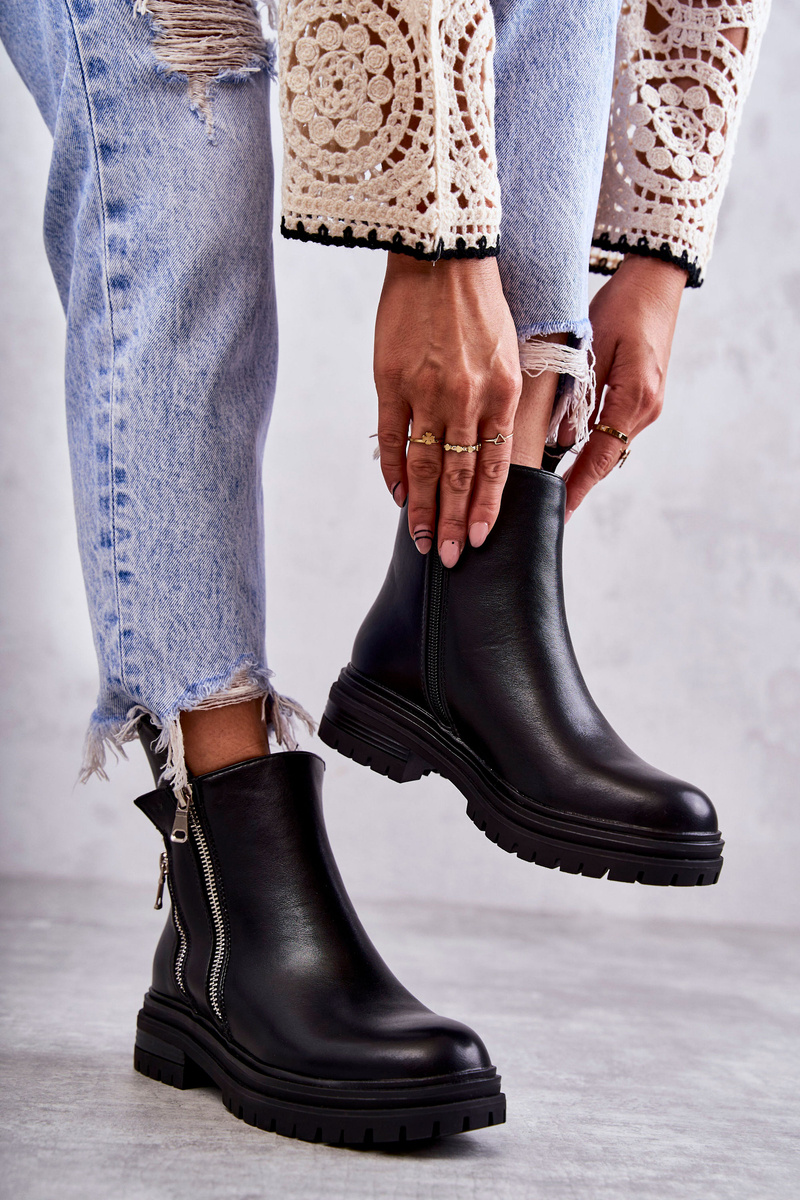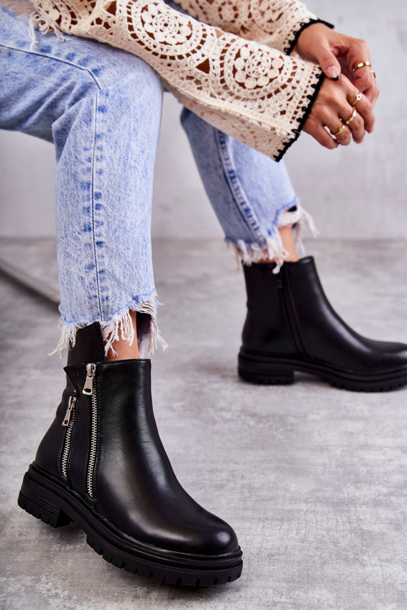 Dámské kožené kozačky na zip Černá Navarra
