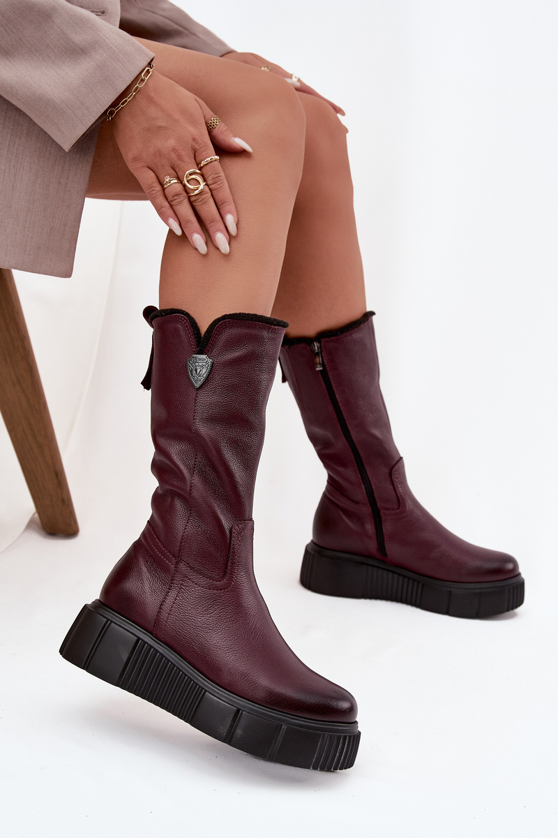 Dámské kožené kozačky s vlnou Zazoo 70121 bordó