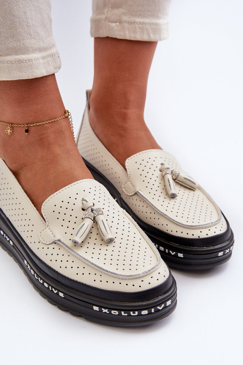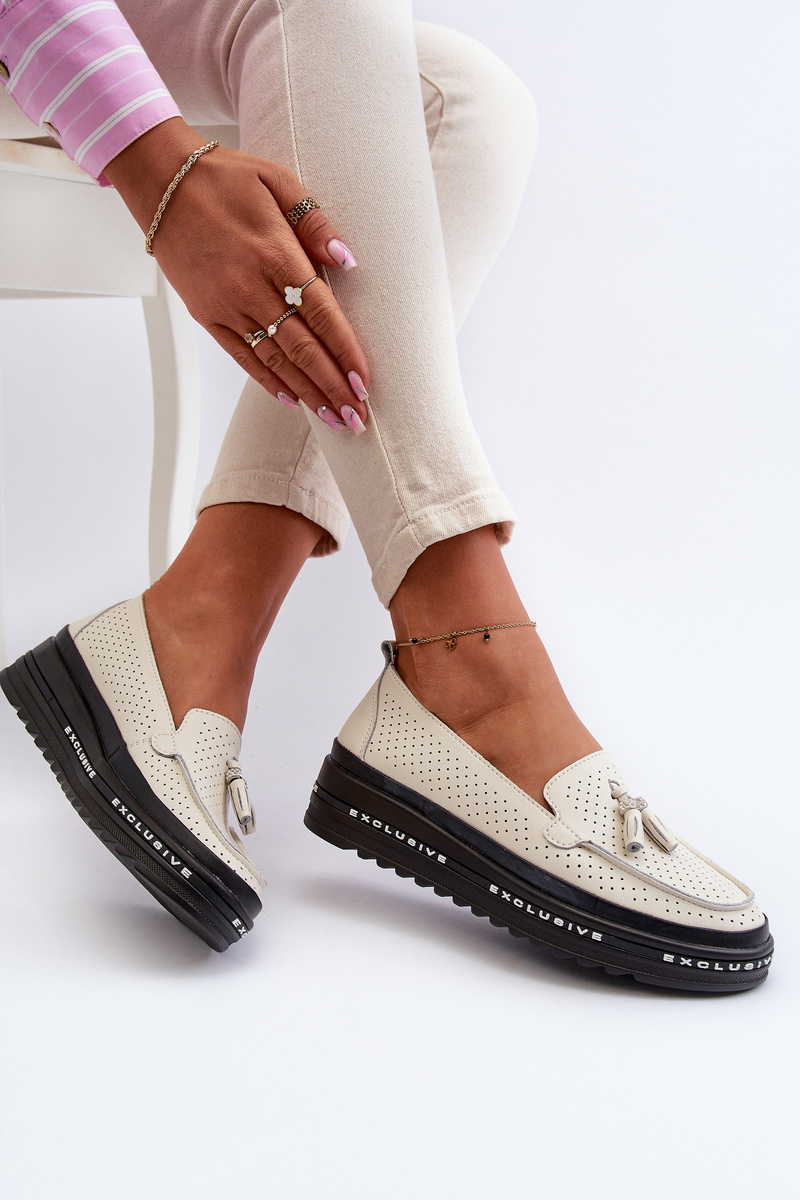 Dámské kožené mokasíny na platformě béžové Assetnima