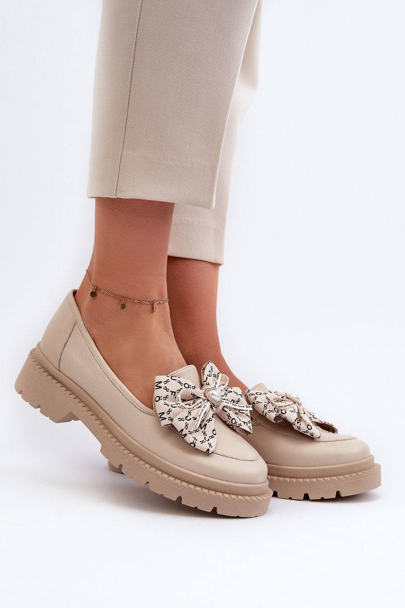 Dámské kožené mokasíny s mašlí Laura Messi 2787 Bežové