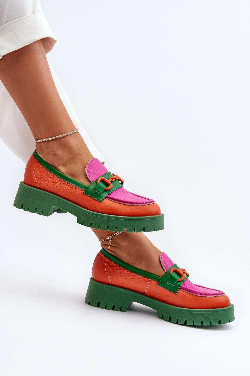 Dámské kožené mokasíny s ozdobou CheBello 4444 oranžové