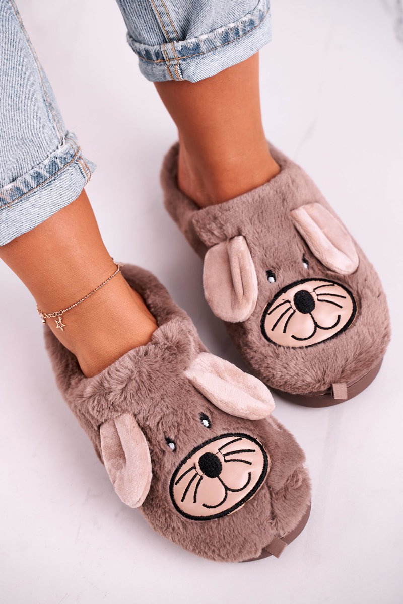 Dámské Kožené Myš Pantofle Béžové Home Sweet Home