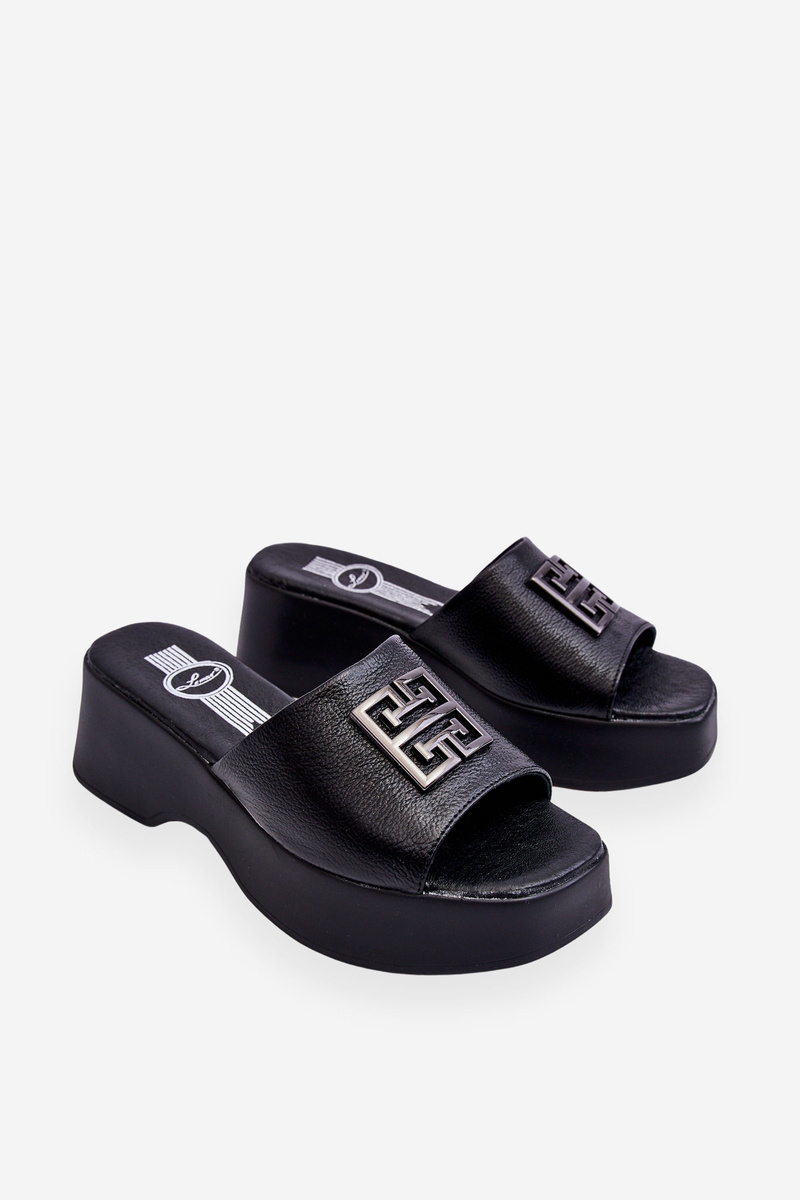 Dámské kožené pantofle na platformě se zdobením Černé Renna