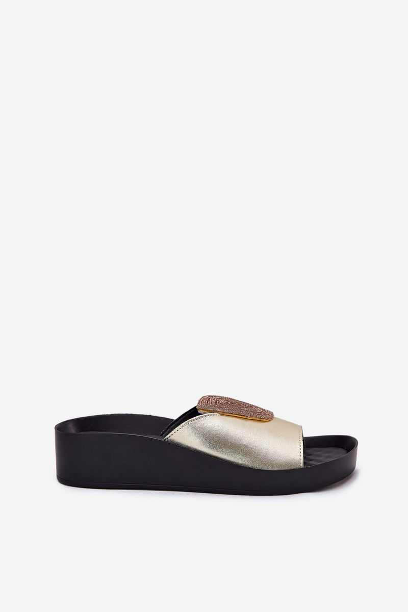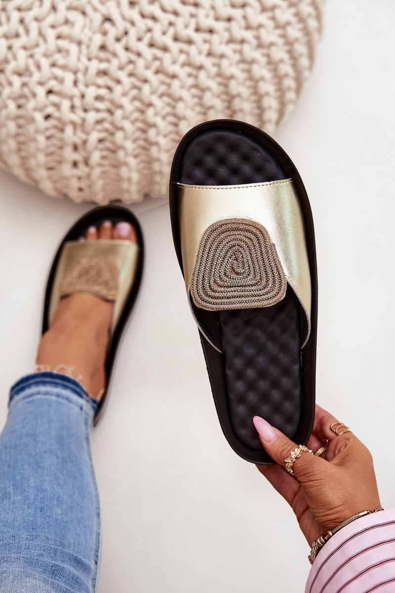 Dámské Kožené Pantofle S Dekorací KV51-028 Zlaté