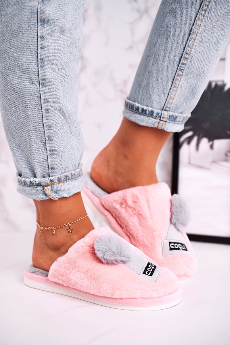 Dámské Kožené Pantofle S Kloboukem A Bambulí Růžove Keep Warm