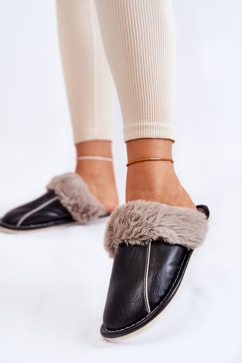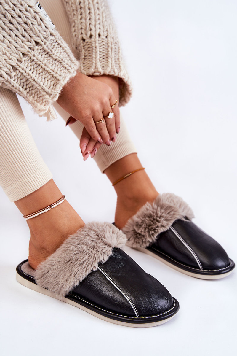 Dámské kožené pantofle s kožíškem Černe Rossa