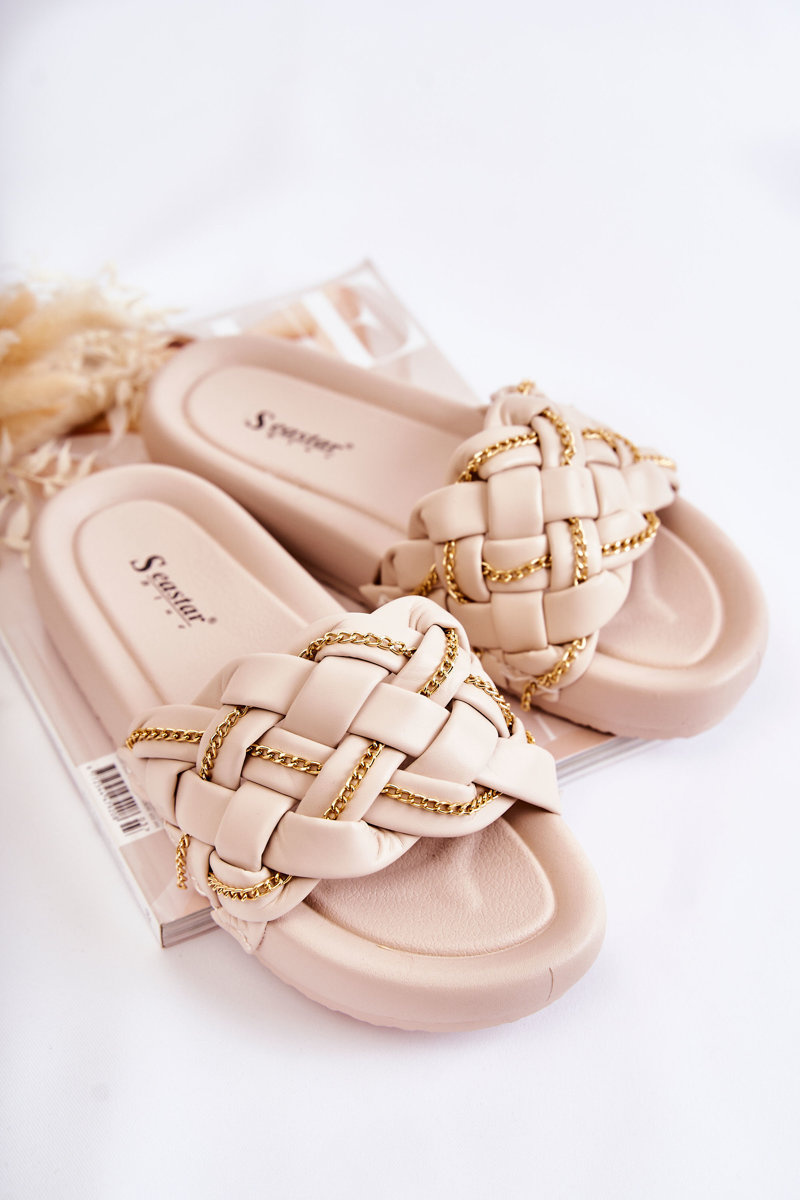 Dámské Kožené Pantofle S Řetízkem béžove Soline