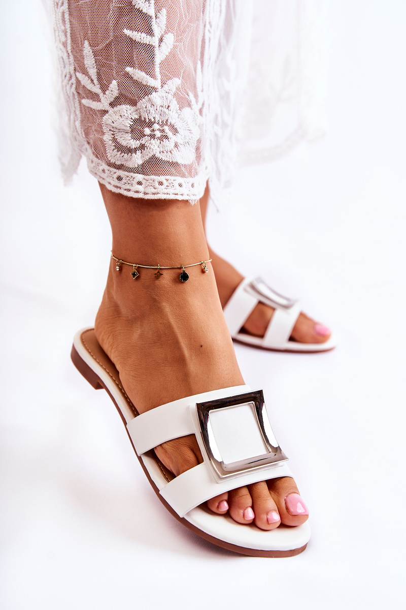 Dámské pantofle klasického střihu. Vyrobeno z eko kůže. Na přední straně mají ozdobný čtverec. Stélka je pohodlná a měkká, vyrobená z eko kůže. Nos je otevřený, zaoblený. Pantofle na rovném podpatku, s protiskluzovou podrážkou. Módní a pohodlné na používání – prostě je musíte mít. Při výběru velikosti použijte tabulku velikostí.
