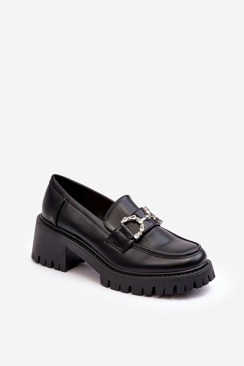 Dámské polobotky vyrobené z eko kůže. Osazené na masivní, nízké podpatku a platformě. Na přední straně bižuterní ozdoba. Špička zaoblená. Zesílené patko. S tímto modelem vytvoříte mnoho skvělých podzimních stylů!