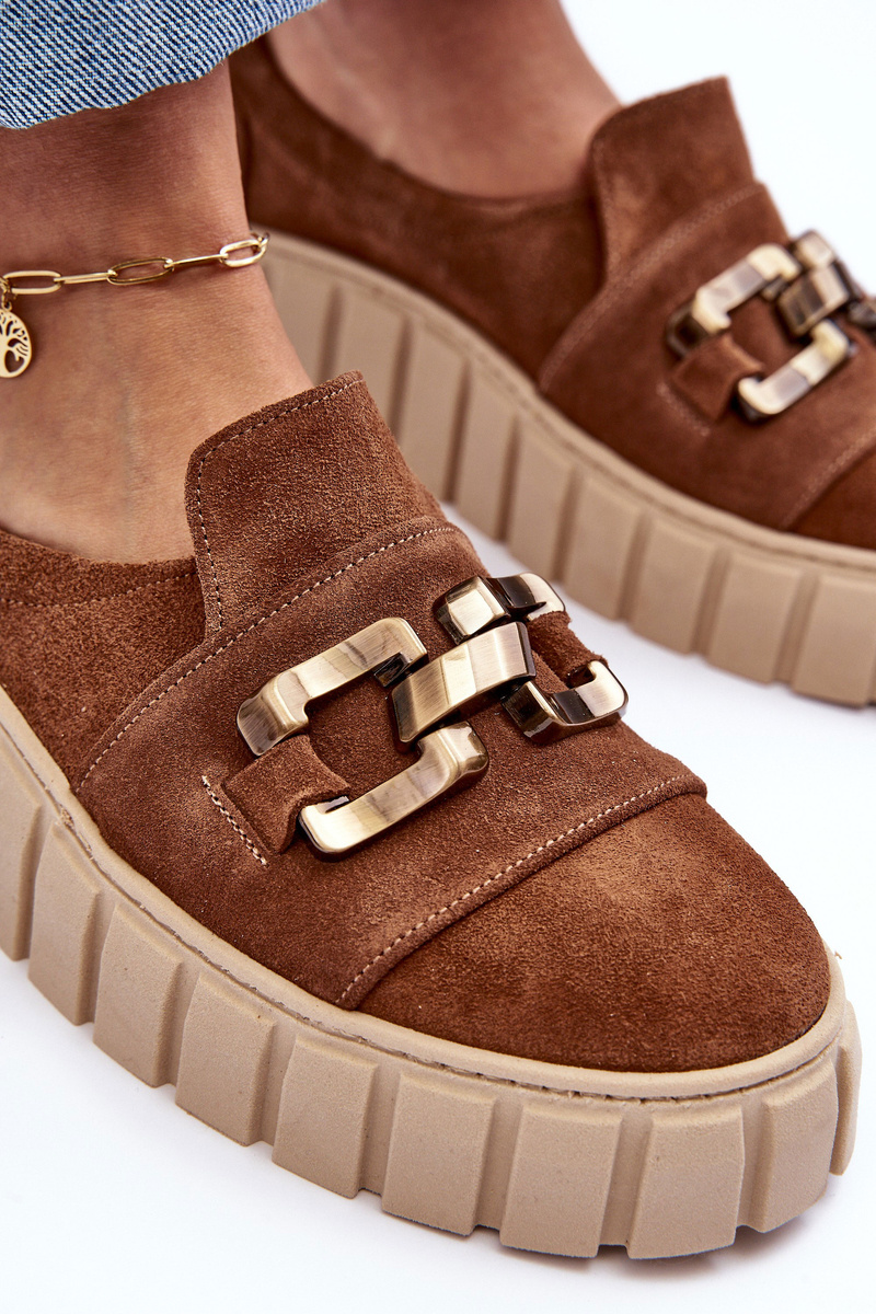 Dámské Kožené Polobotky Na Platformě S Ozdobou Hnědé Lewski 3398
