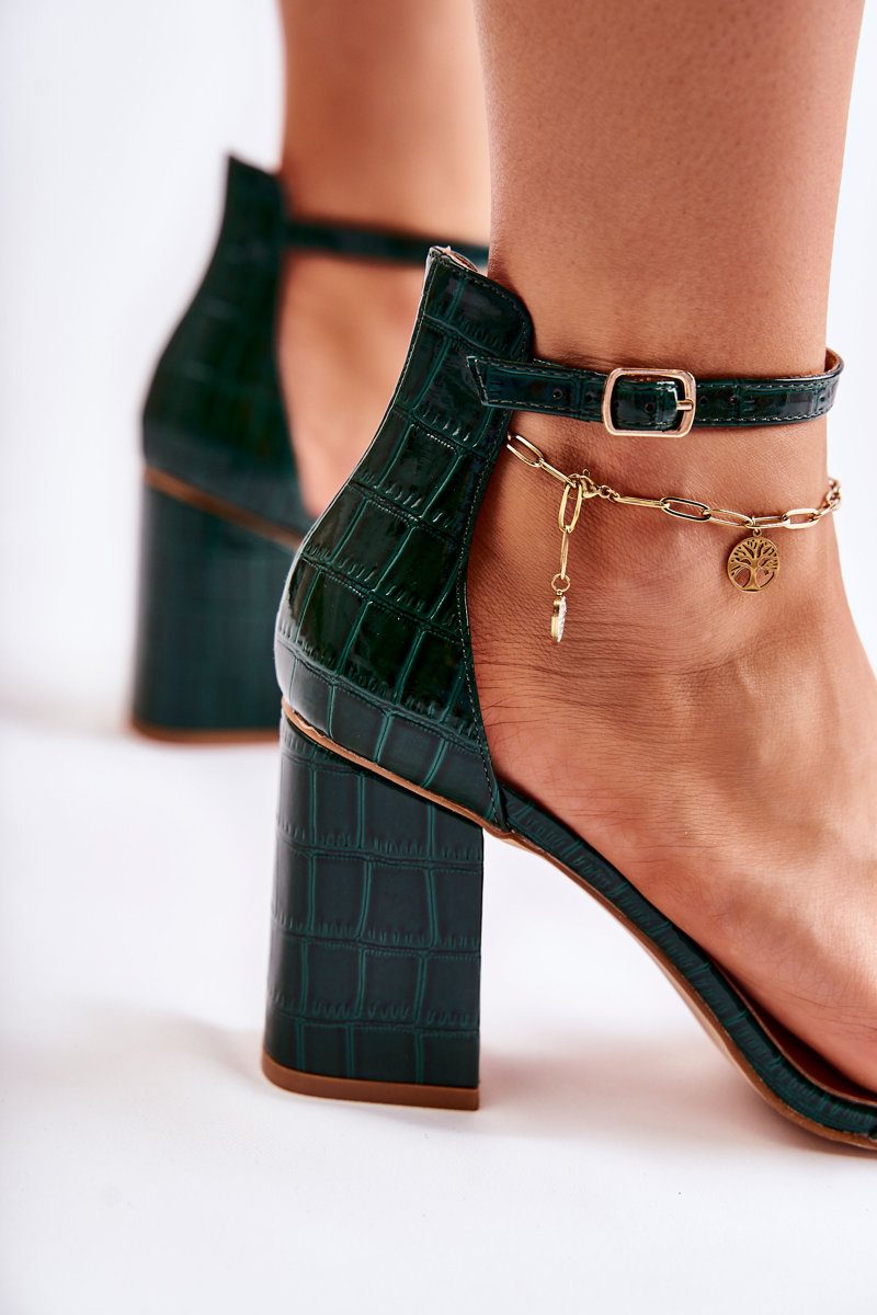 Módní dámské sandály na podpatku v podobě masivního sloupku. Boty jsou vyrobeny z eko kůže. Pohodlí při používání zajišťuje stélka z ekokůže. Zapínání pomocí nastavitelného pásku s přezkou. Boty mají otevřenou hranatou špičku. Vyztužená pata dokonale stabilizuje chodidlo. Nezapomeňte se podívat na celou naši kolekci sandálů na vysokém podpatku! Při výběru velikosti použijte tabulku velikostí.