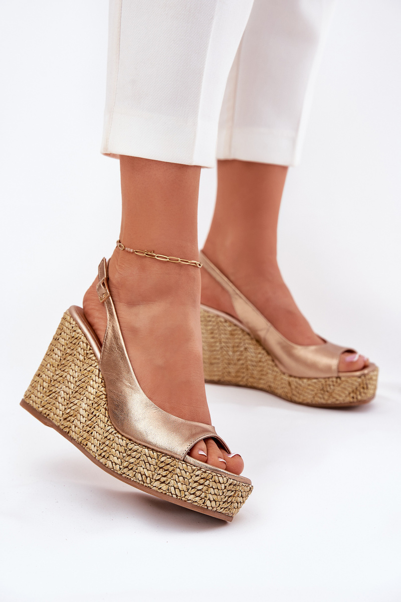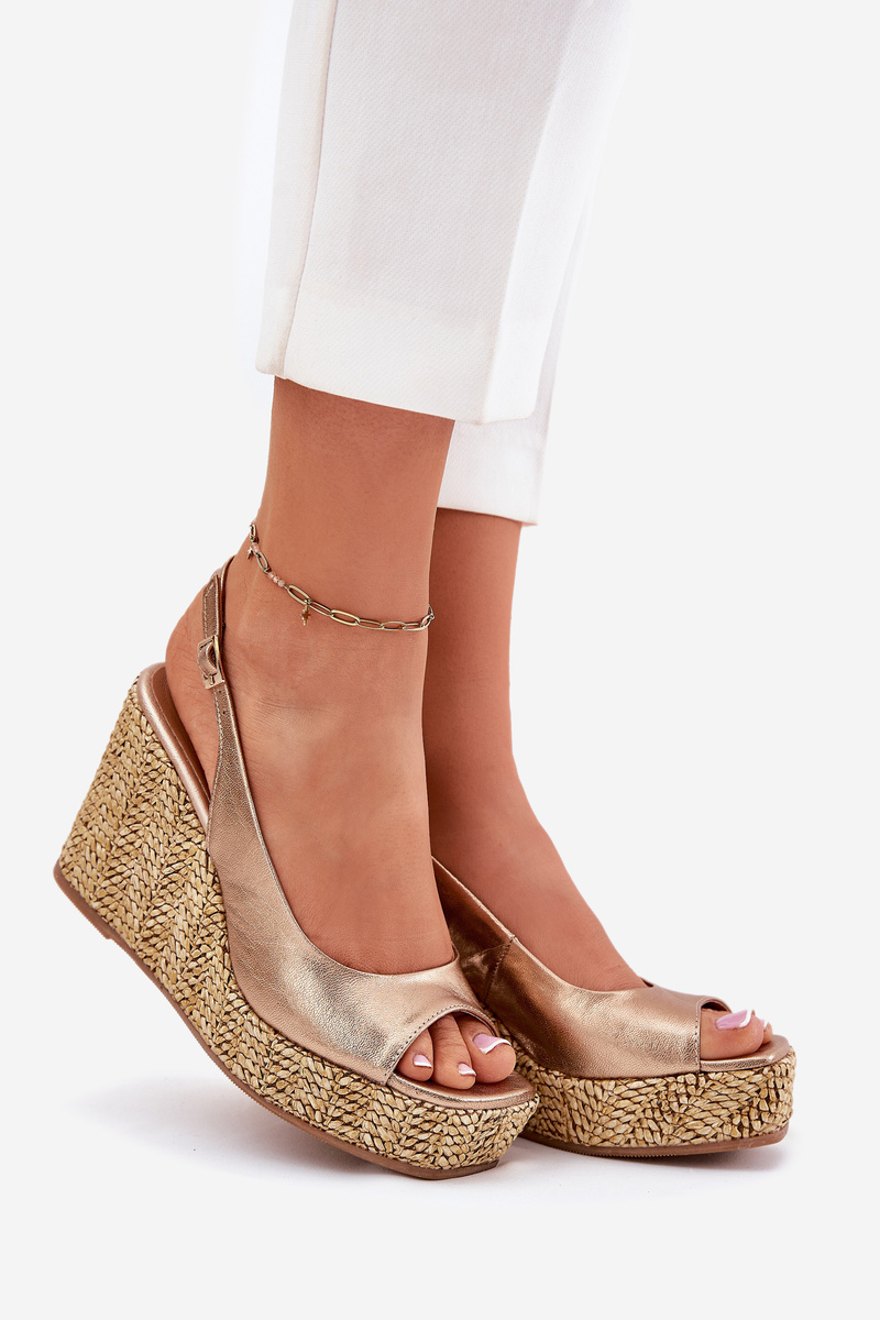 Dámské Kožené Sandály Na Klínu S Pletením Laura 2789 Zlaté