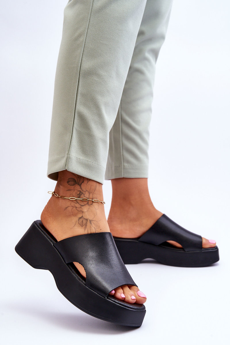 Klasické dámské pantofle jsou zasazeny na masivní platformě. Tento model je extrémně pohodlný na používání díky měkké kožené stélce. Žabky mají otevřenou hranatou špičku. Svršek s výřezy je vyroben z přírodní kůže. Tento model si určitě zamilujete! Na nic nečekejte a nakupujte ještě dnes!