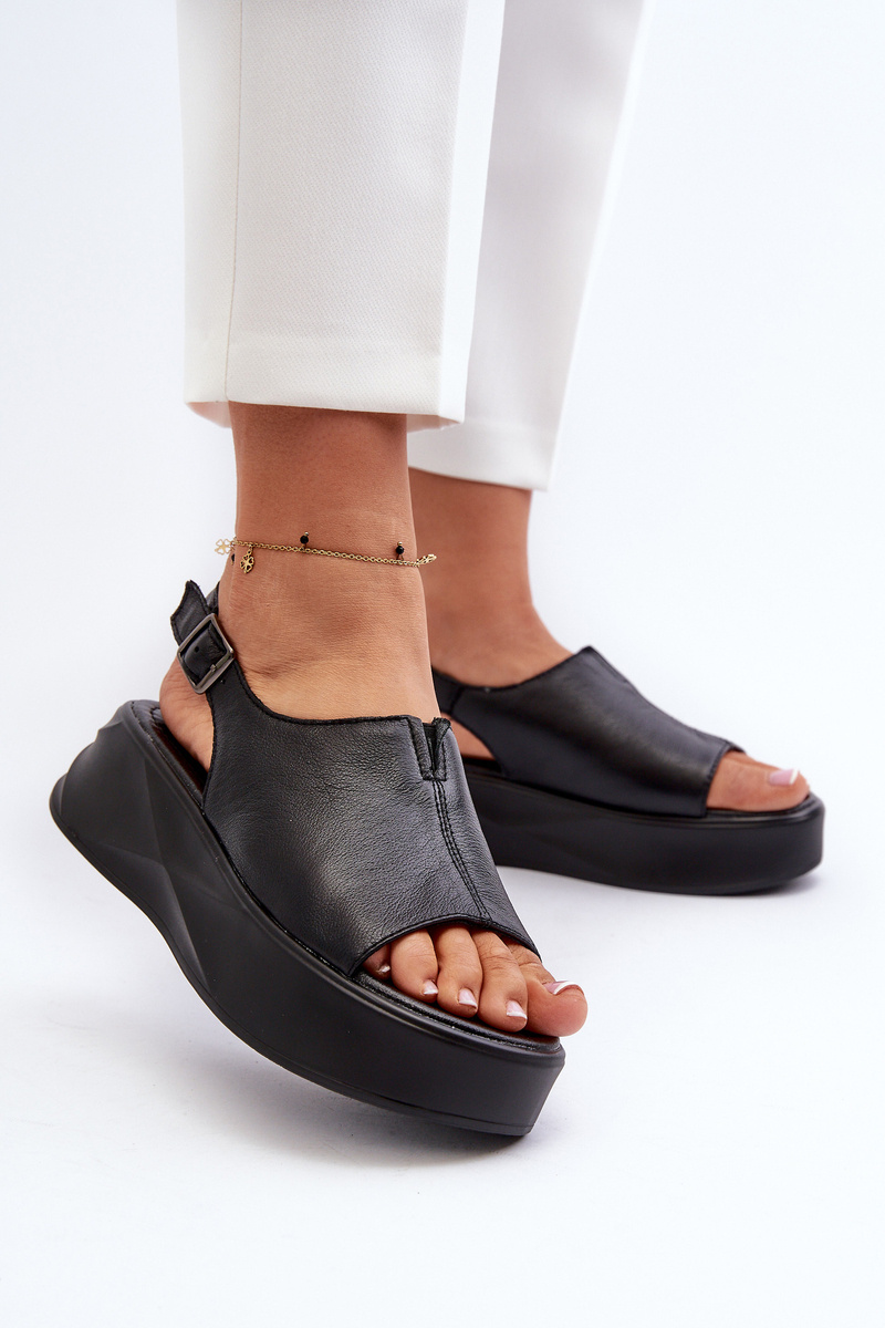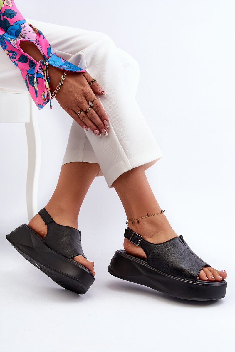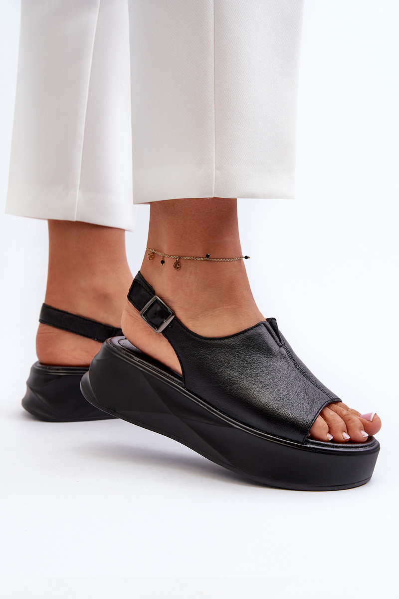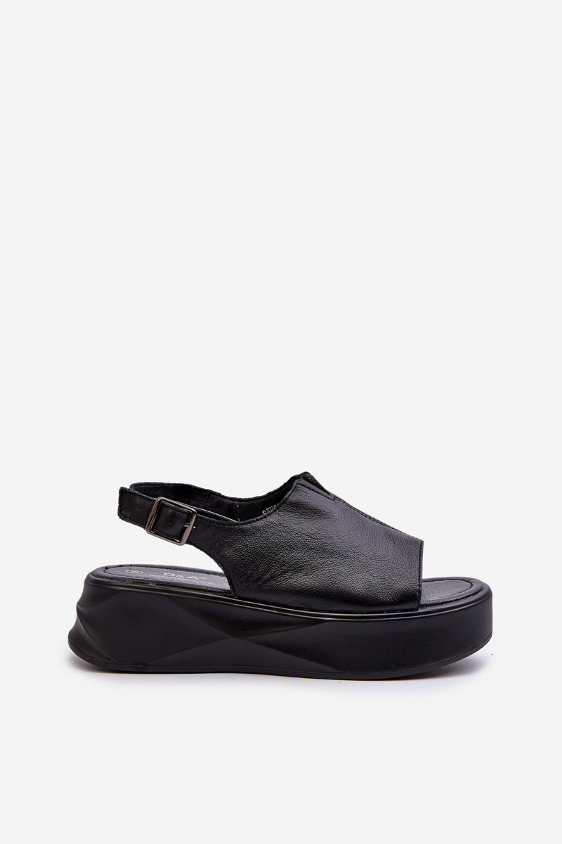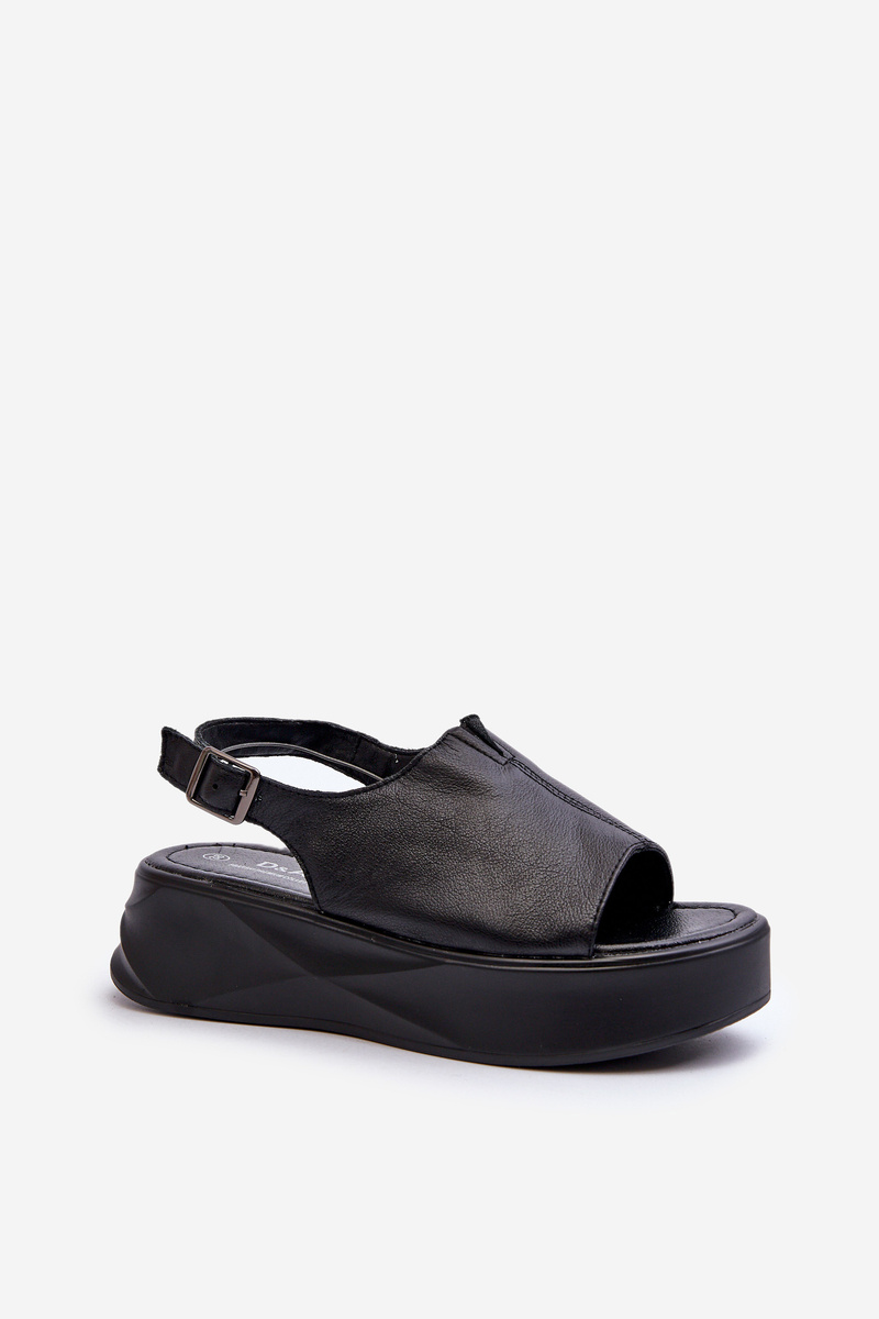Dámské kožené sandály na platformě D&A SJ2301-2 černé