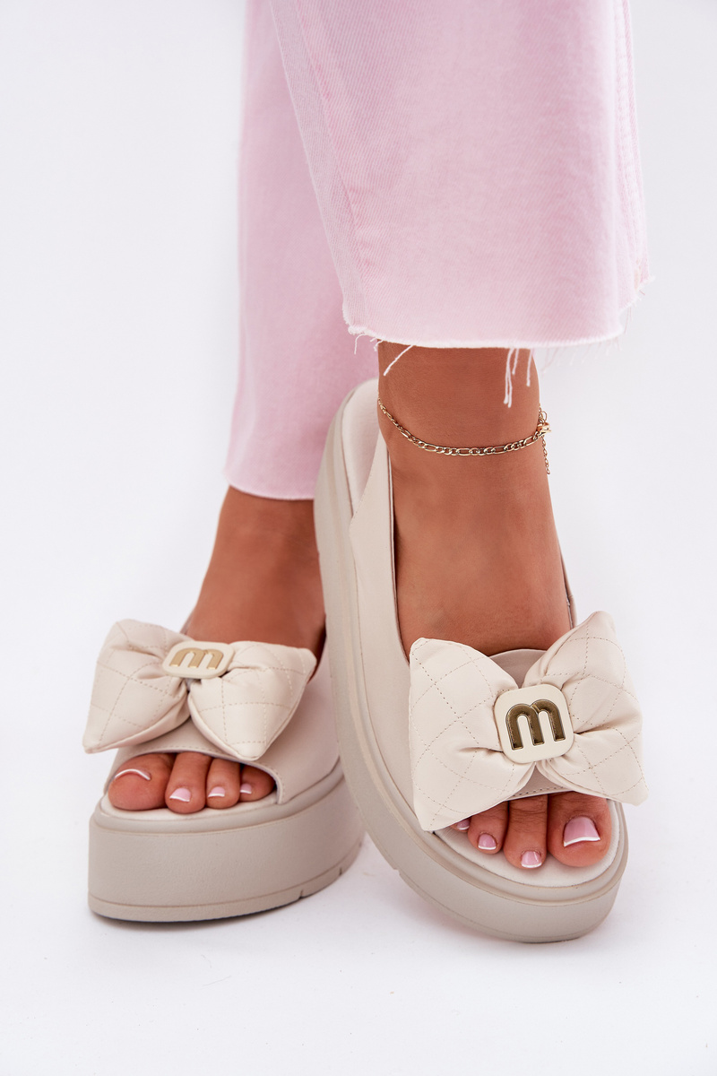 Dámské Kožené Sandály Na Platformě S Mašlí CheBello 4641 Béžové