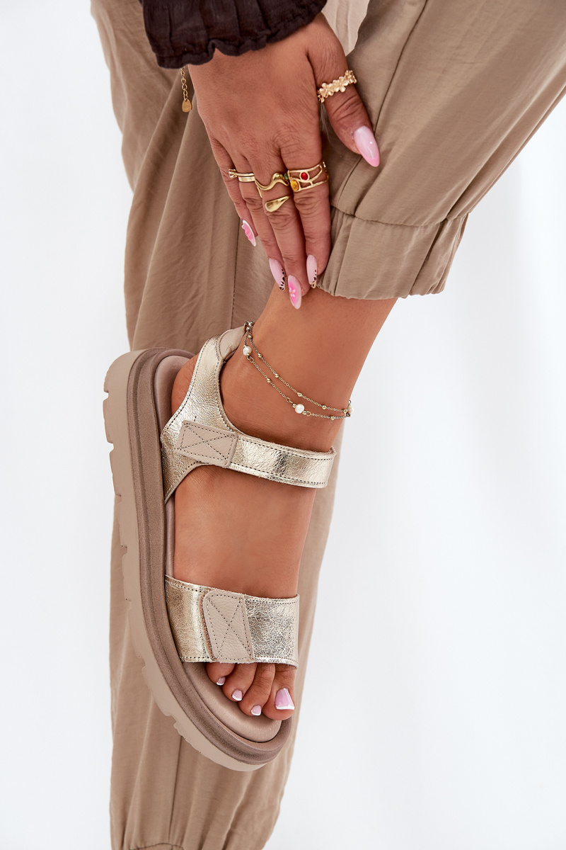 Dámské kožené sandály na platformě zlaté Zazoo 40443