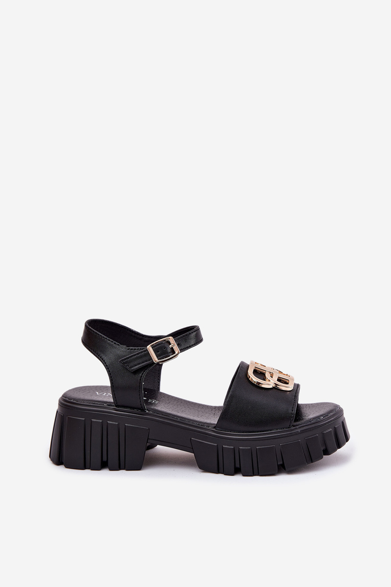 Dámské kožené sandály se zlatým detailem Vinceza 79541 Černé