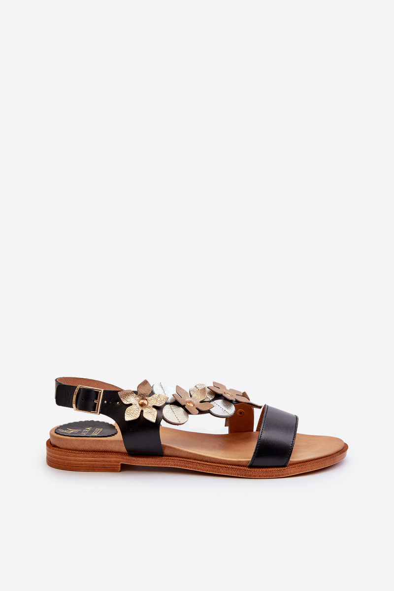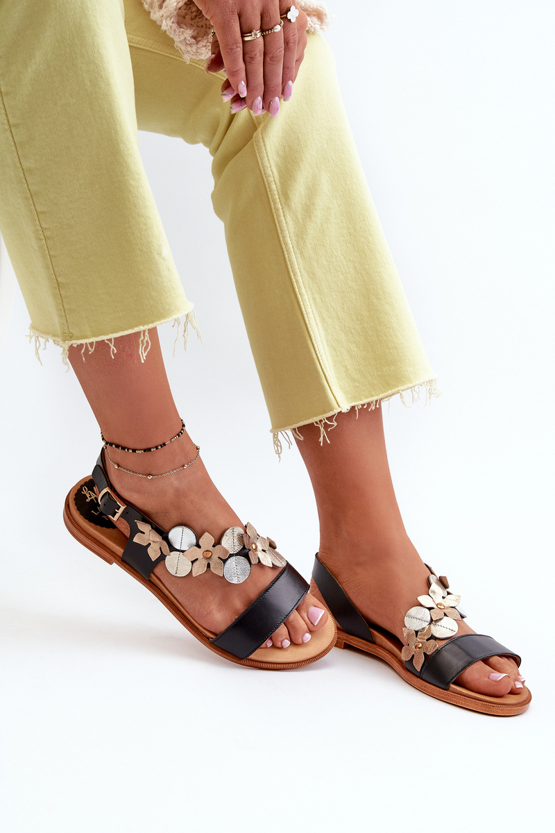 Dámské kožené sandály zdobené květinami Laura Messi 2762 černé