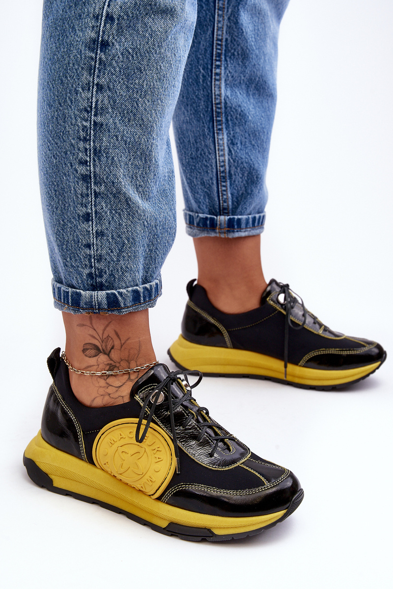 Dámské kožené sportovní boty Maciejka 06295-01 černá a žlutá