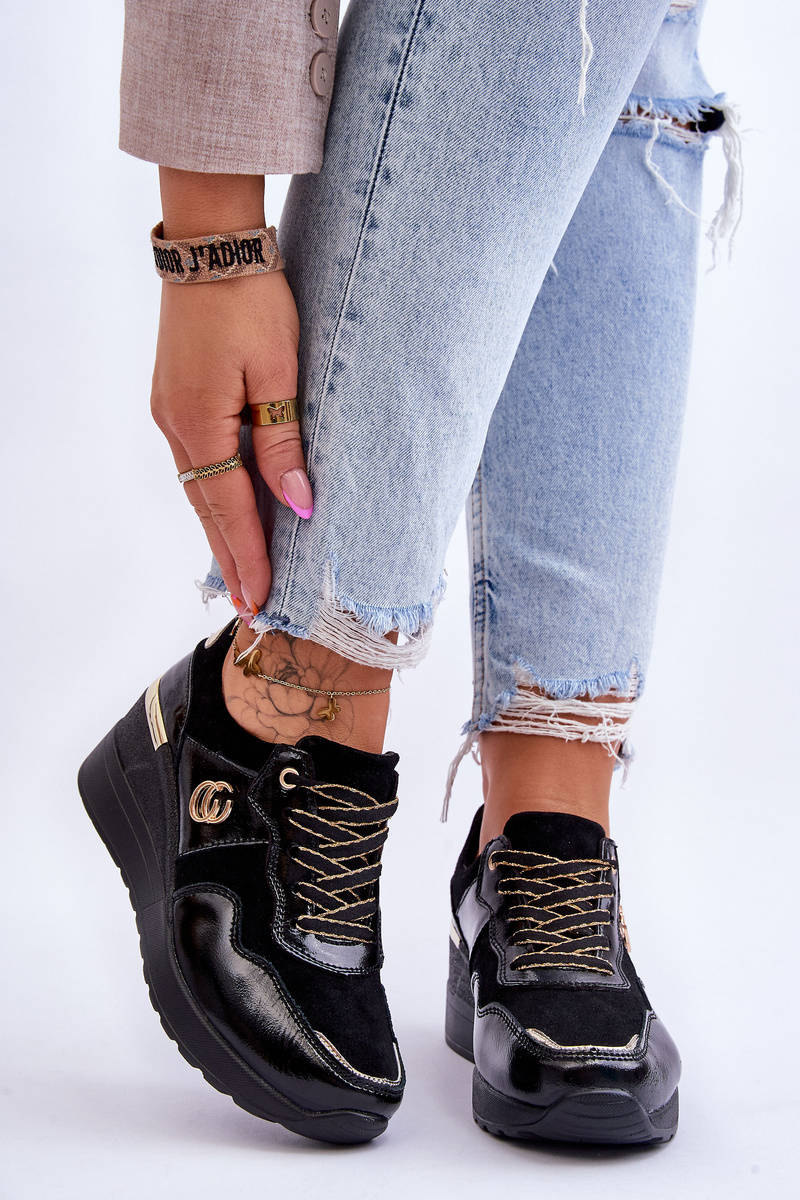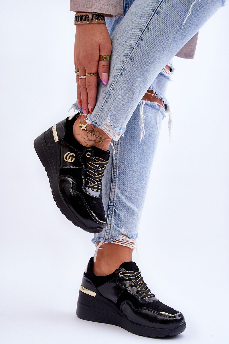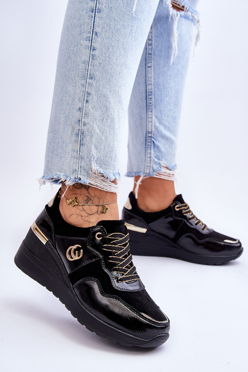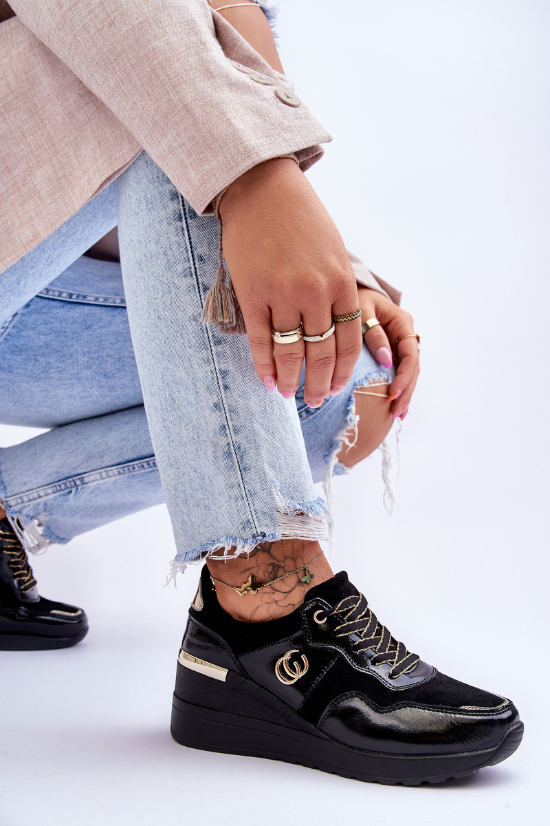 Dámské kožené sportovní boty na klínku Černá Rebeca