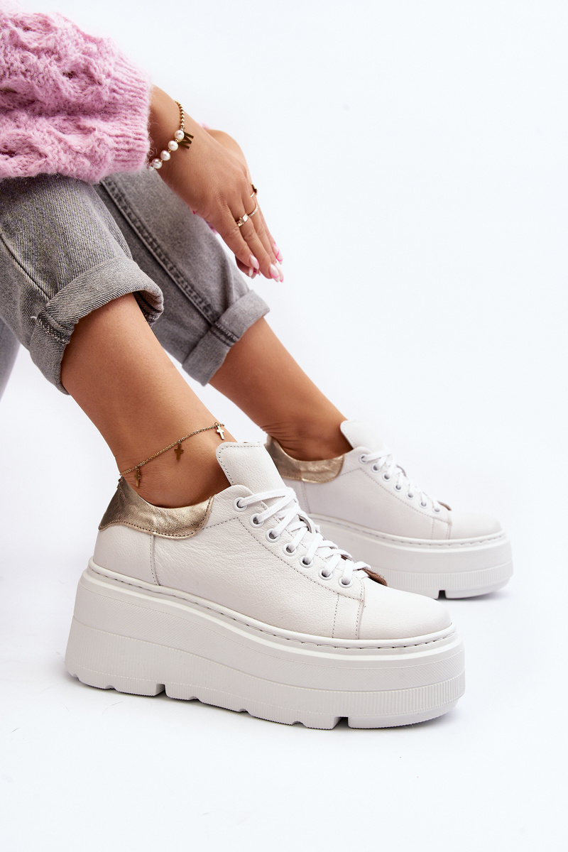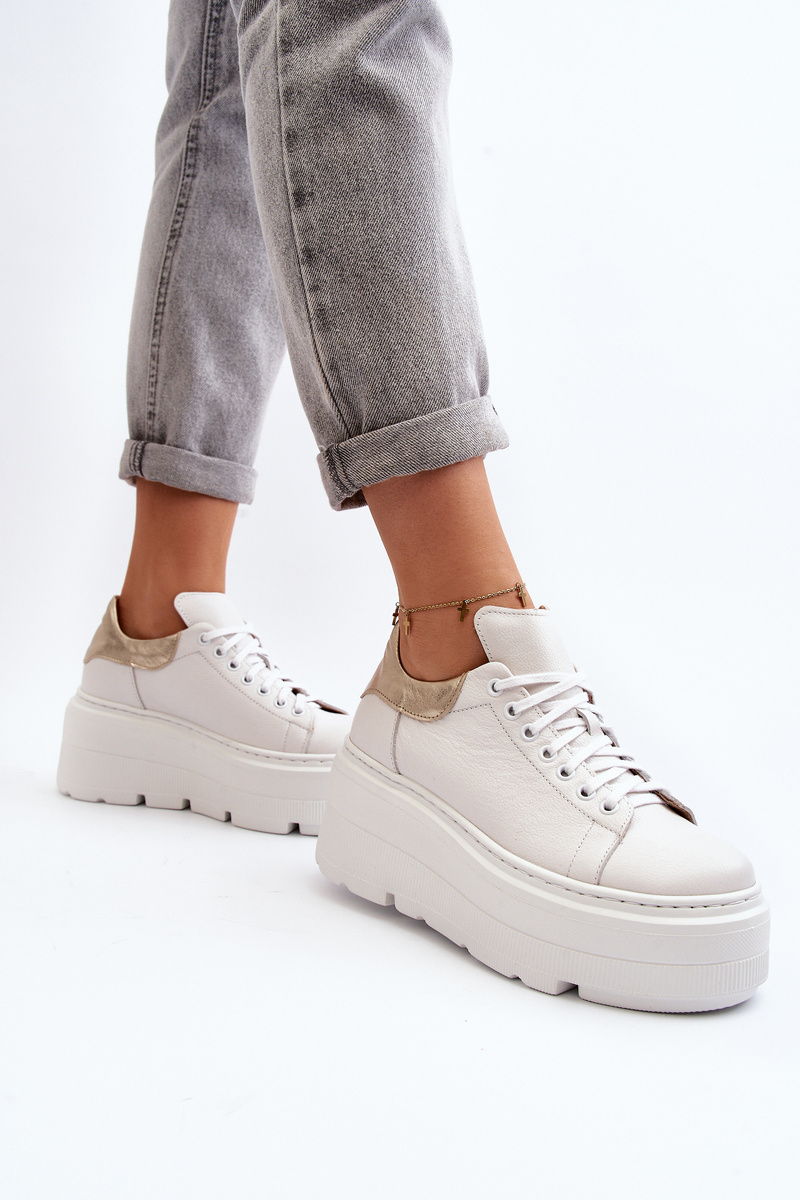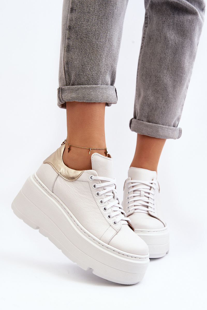 Dámské kožené sportovní boty na platformě M01/1 Zazoo světle béžové