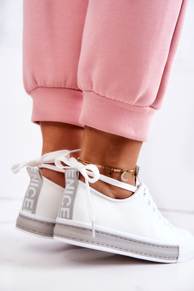 Dámské tenisky vyrobené z eko kůže. Klasický model se hodí k mnoha stylům, ke kalhotám, šatům i delším sukním. Boty se dobře přizpůsobí tvaru nohy. Mají měkkou látkovou stélku. Klasicky vázaný model. Boty mají protiskluzovou podrážku. Při výběru velikosti použijte tabulku velikostí.