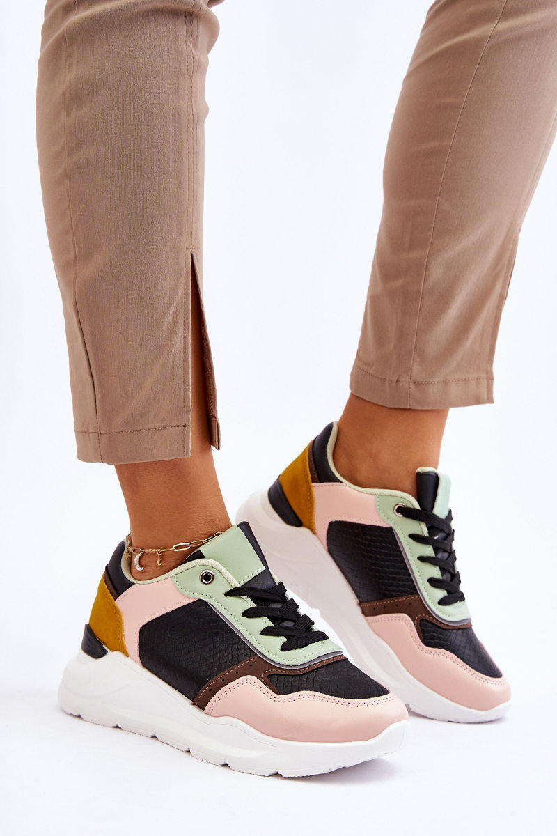 Dámské kožené tenisky na platformě černá a zelená Chaya