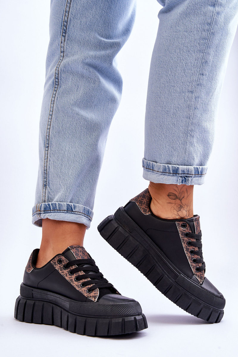 Pohodlná sportovní obuv je vyrobena z eko kůže s módním vzorem. Šněrovací design. Boty byly namontovány na masivní platformě vyrobené z plastu. Měkká stélka z materiálu zajistí pohodlné používání. Kulatý nos. Tento model se hodí k mnoha sportovním stylům. Při výběru velikosti se prosím řiďte tabulkou velikostí.