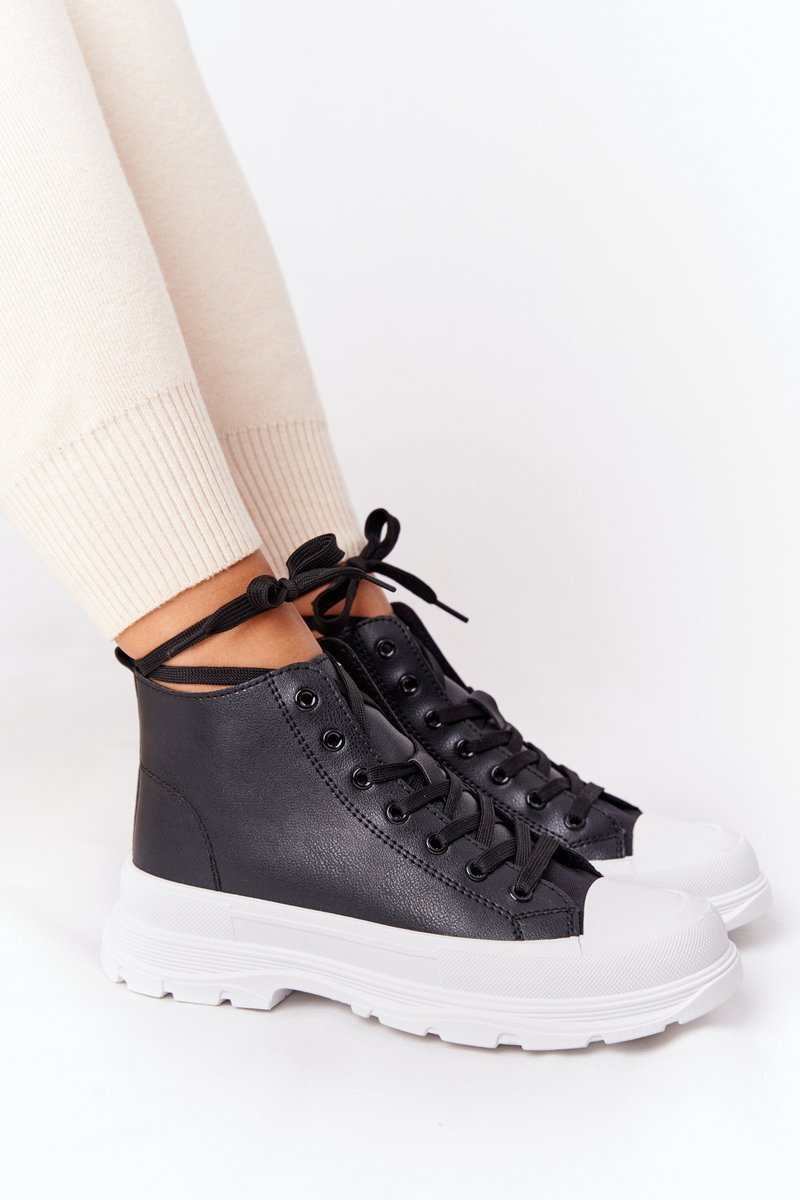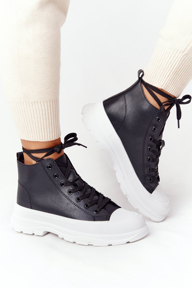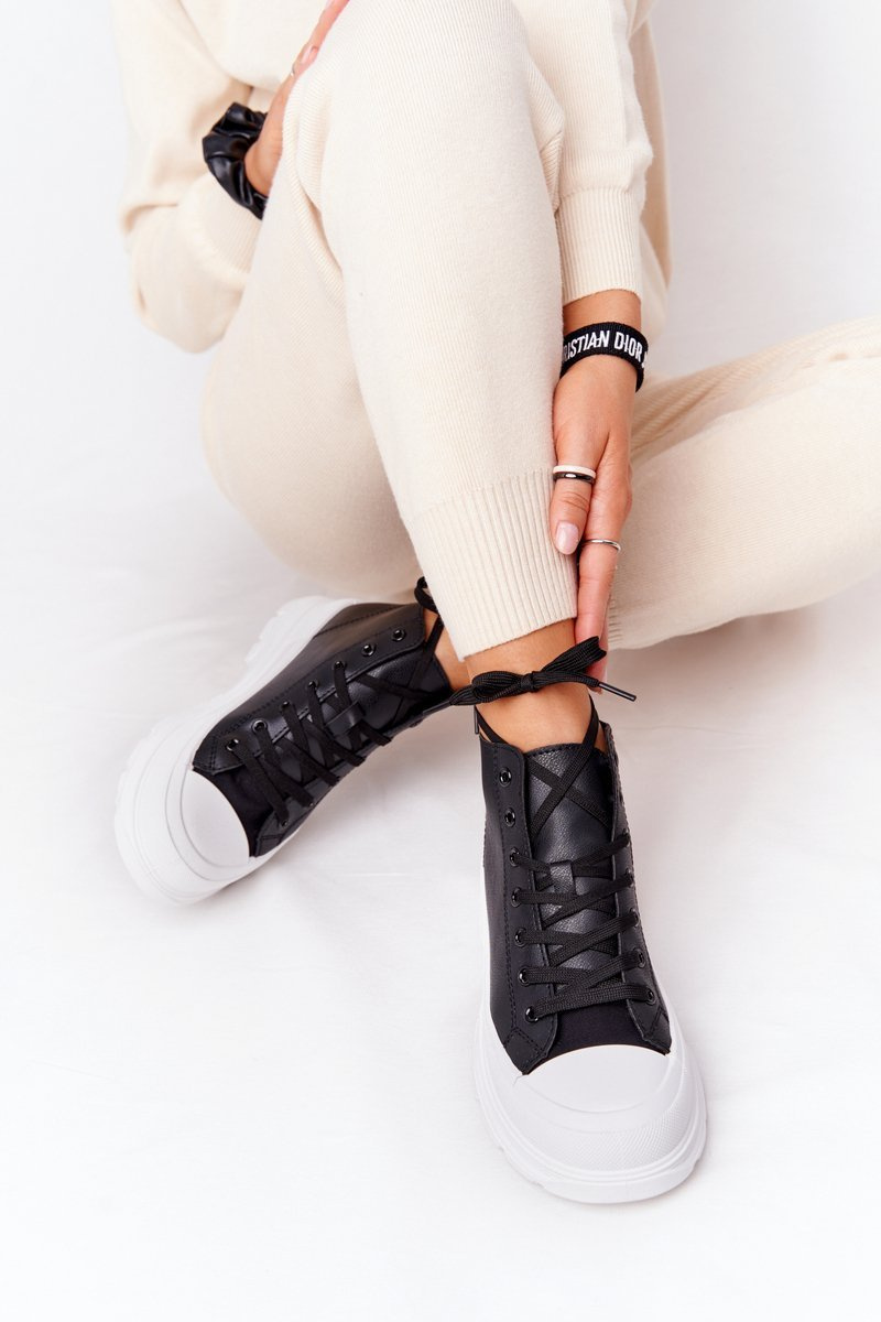 Dámské Kožené Tenisky Na Velké Podrážce Černé Trissy
