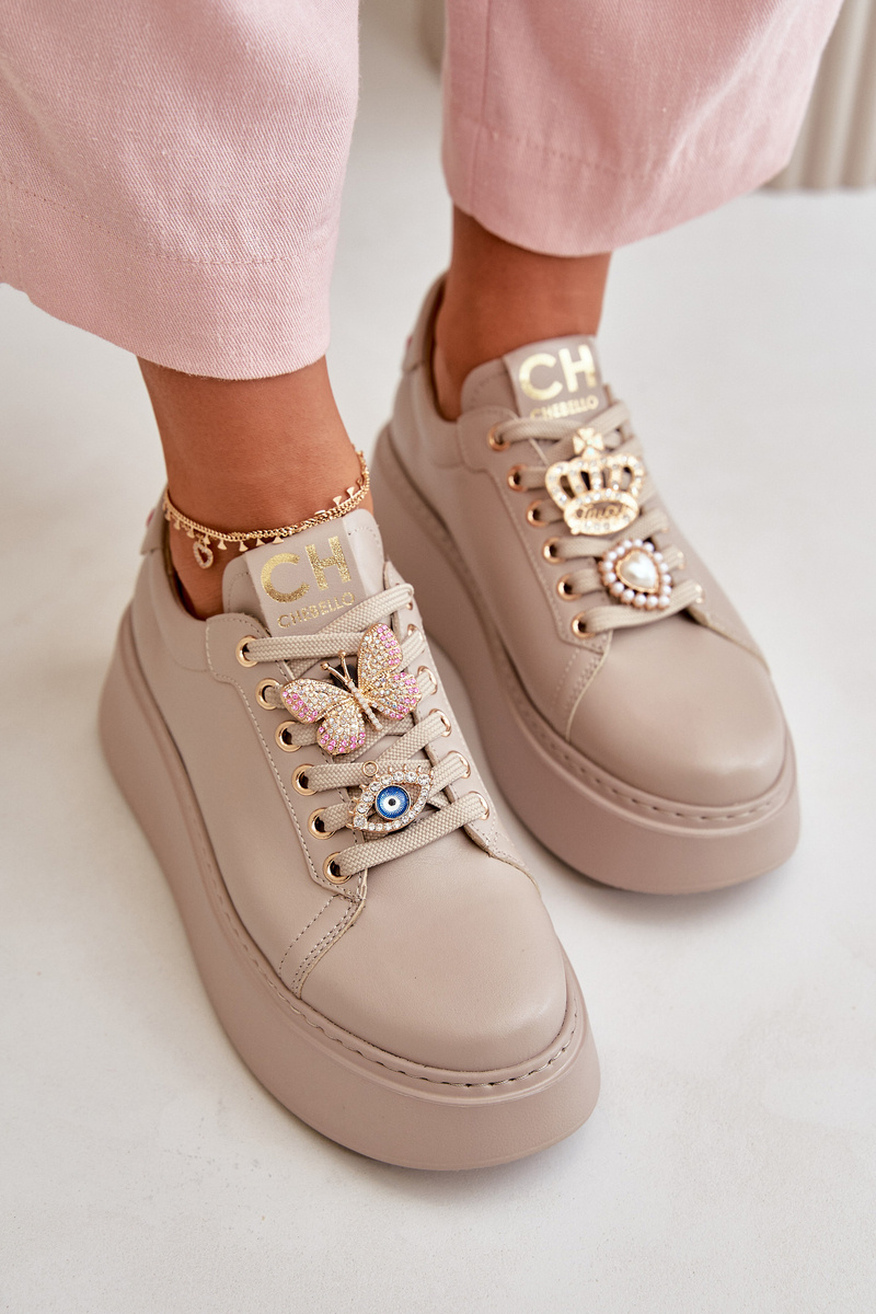 Dámské kožené tenisky s ozdobami CheBello 4292 béžové