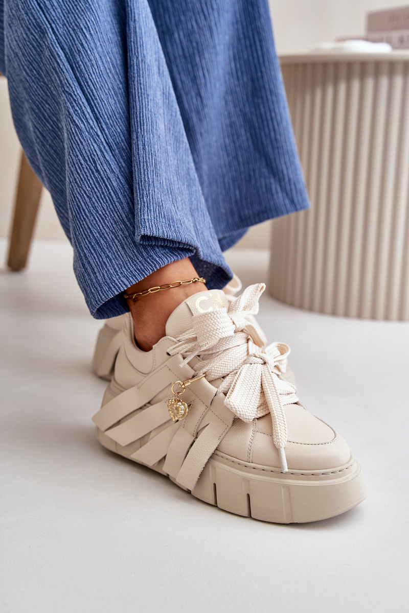 Dámské kožené tenisky s ozdobami CheBello 4292 béžové