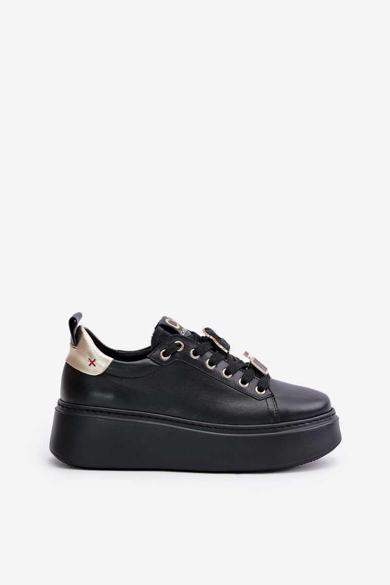 Dámské Kožené Tenisky S Připínáčky Na Platformě CheBello 4596 Černé