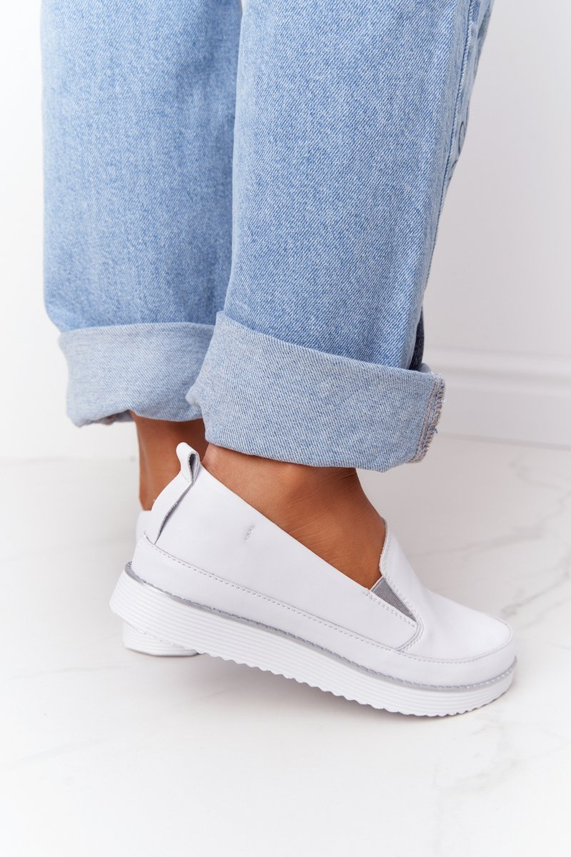 Dámské Kožené Tenisky Slip-On S.Barski Bílé