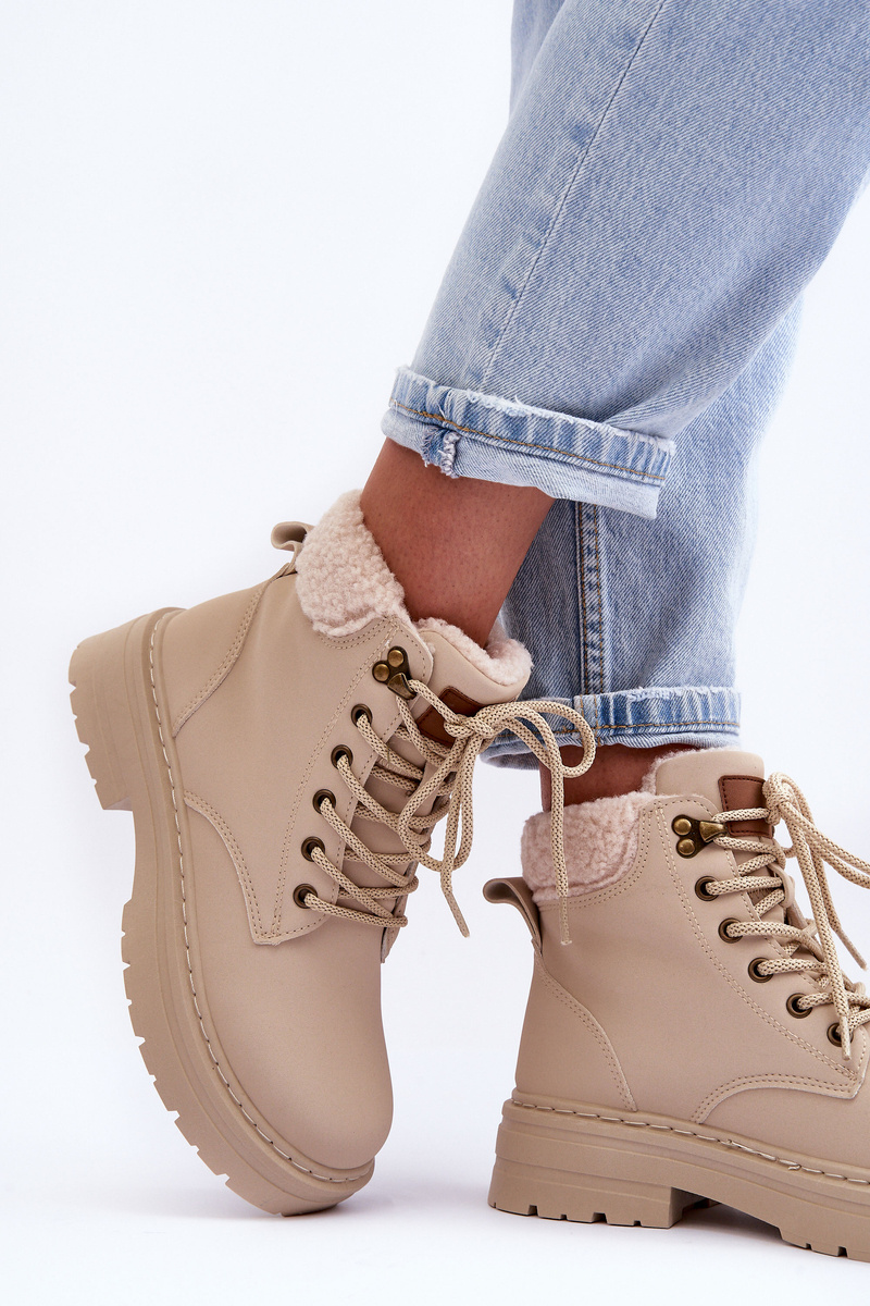 Dámské trapery vyrobené z ekologické kůže. Klasický model s šněrováním. Umístěné na platformě a plochém podpatku. Na horní straně a vnitřní straně jazyka je kožešina. Tento model traperů uchvátí každého! Při výběru velikosti se řiďte tabulkou velikostí.
