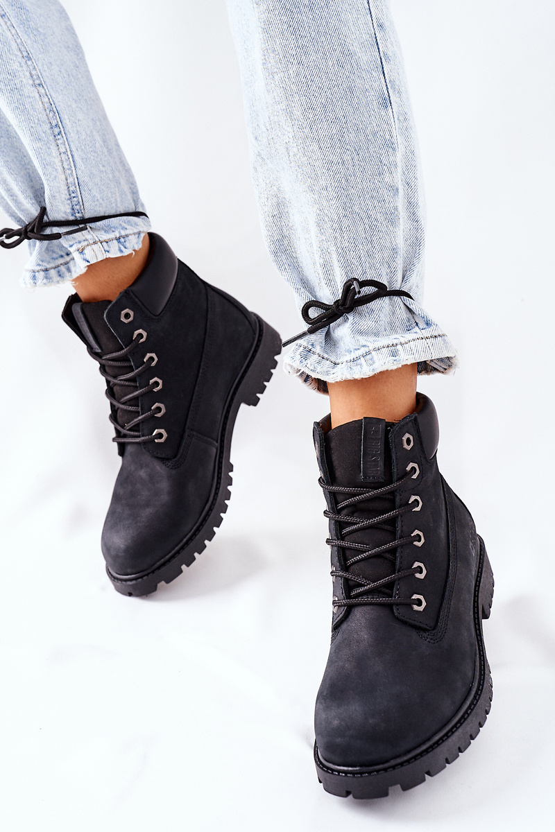 Dámské Kožené Turistické Boty Big Star II274446 Černé