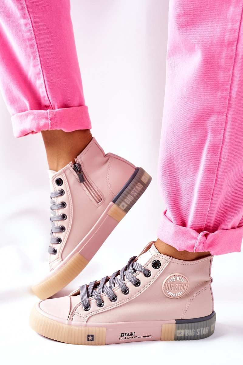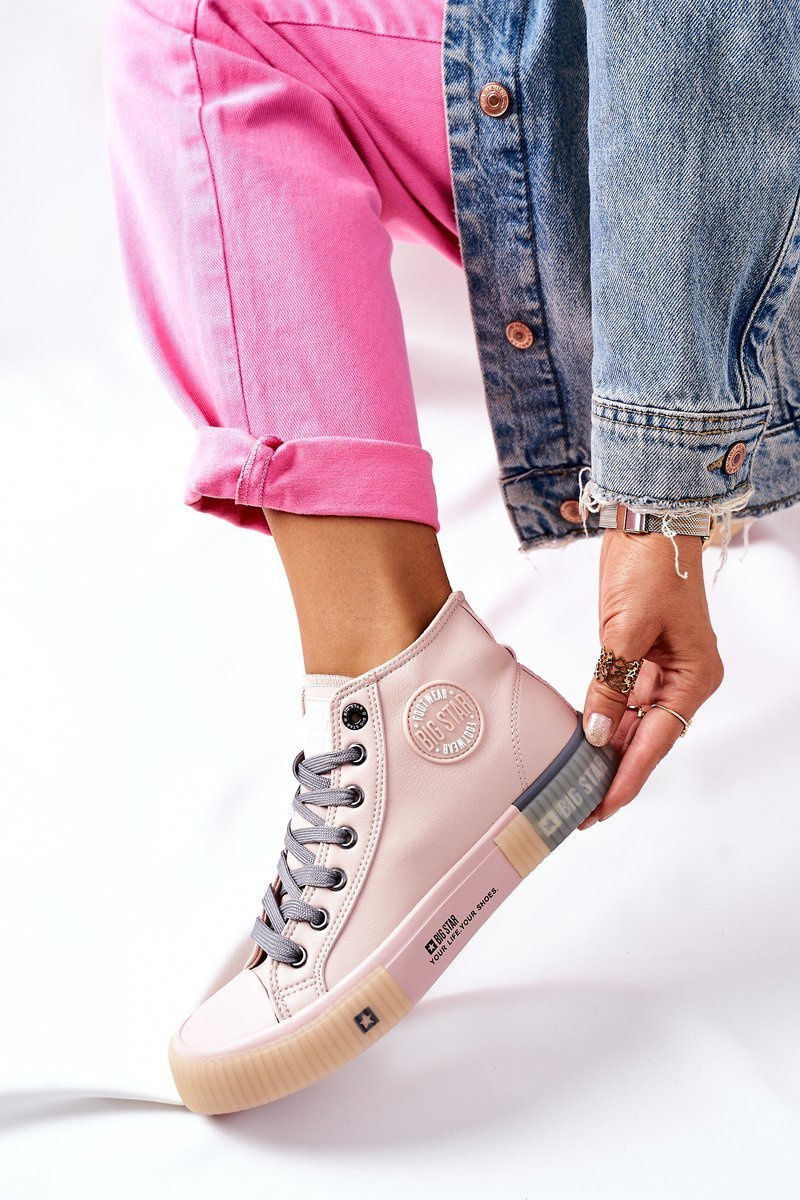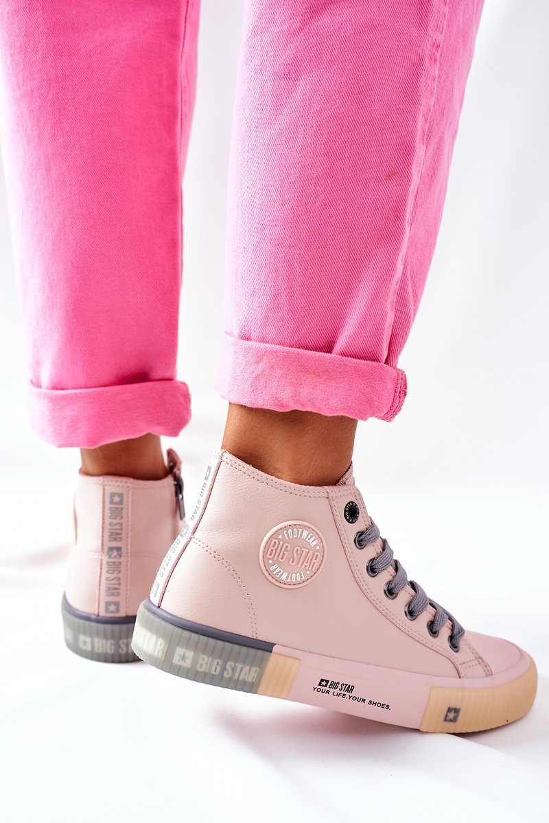 Dámské Kožené Vysoké Tenisky Big Star II274138 Růžové