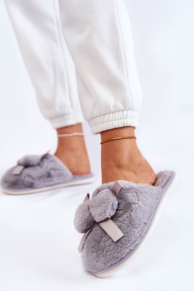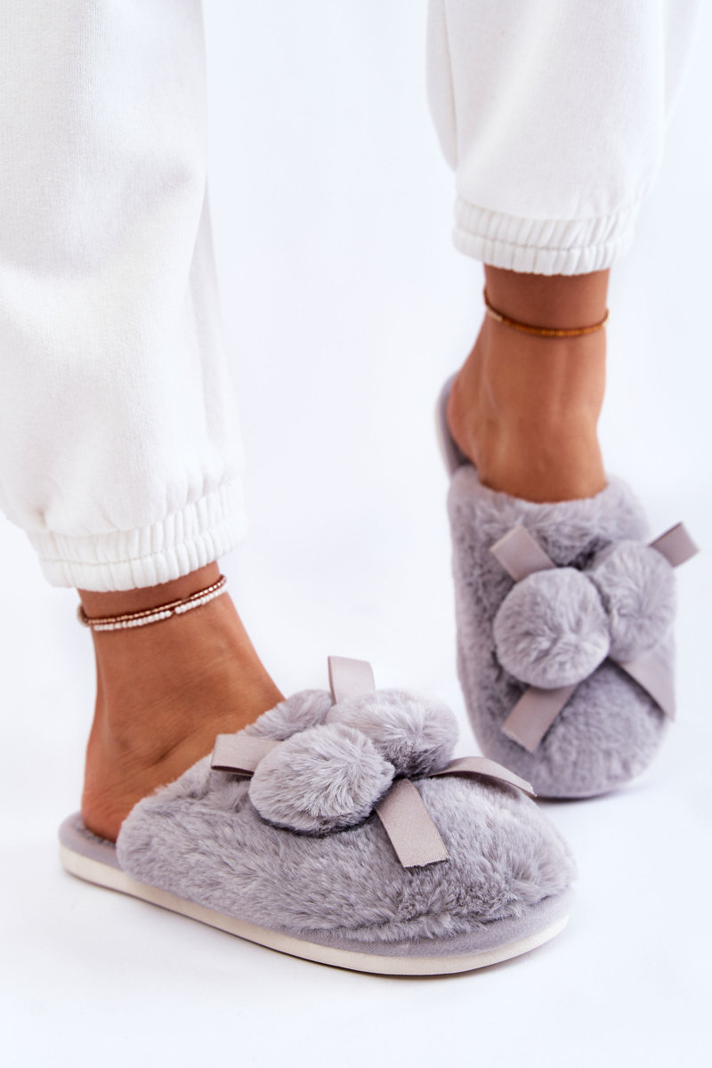Dámské kožešinové pantofle s bambulí Šedé Castello