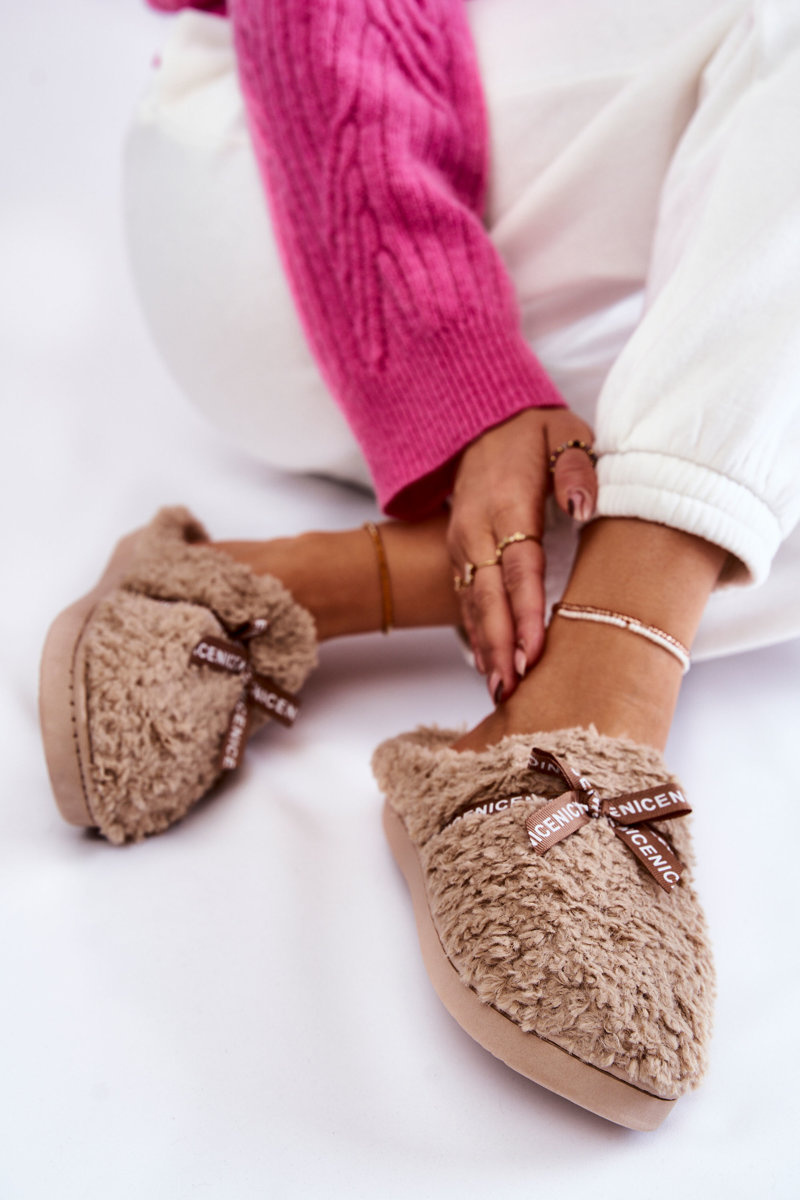 Dámské kožešinové pantofle s mašlí Béžový Ryana